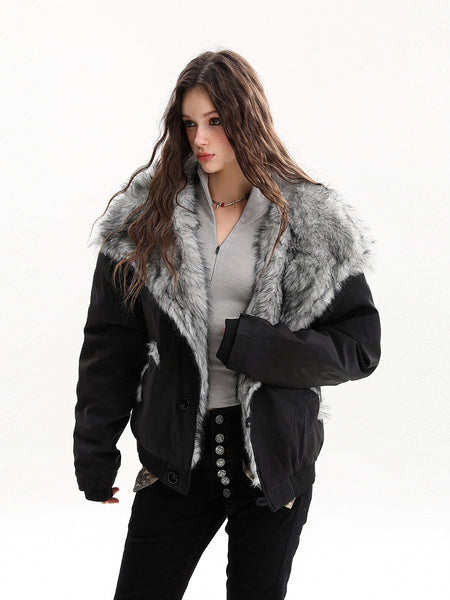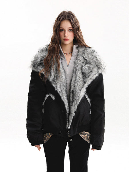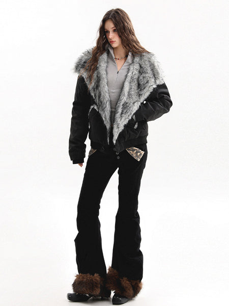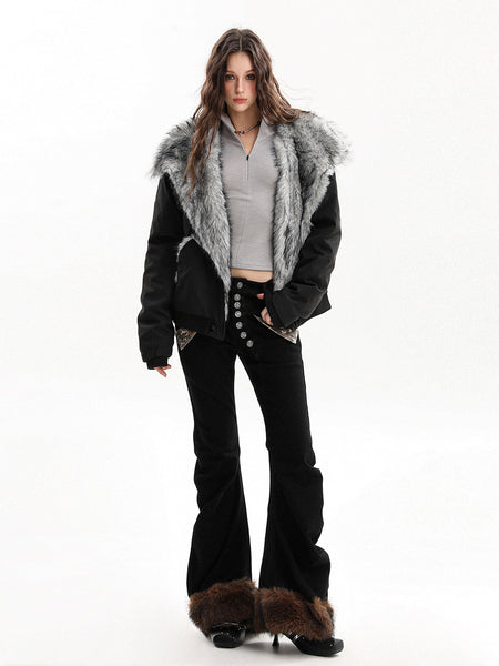 BIGGOLD | Fur Collar Off-Shoulder Long Sleeves