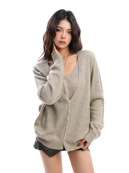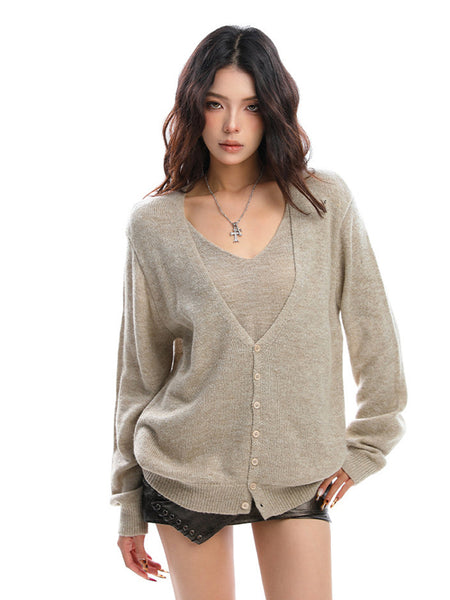 BIGGOLD | Faux Two-Piece V-Neck Sweater