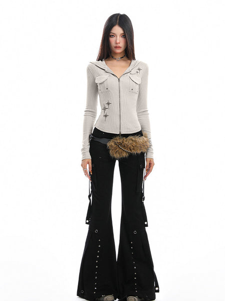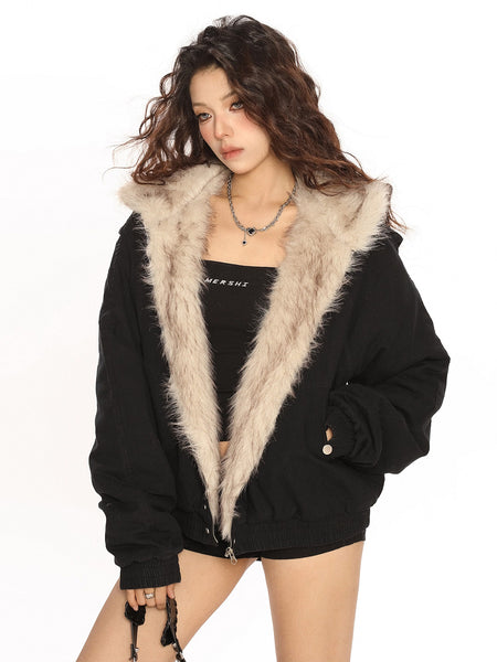 BIGGOLD | Fur-Collar Hooded Cropped Sweatshirt