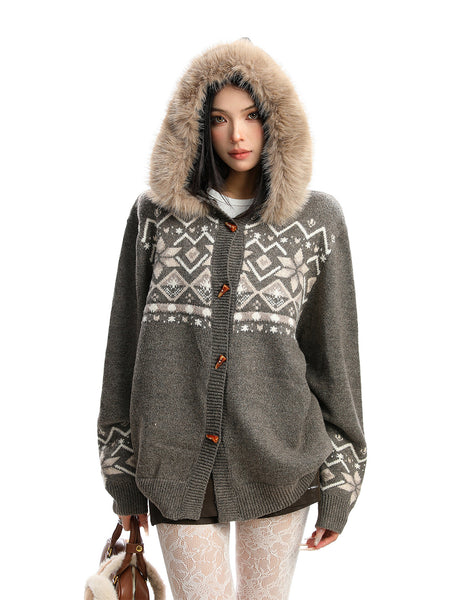 BIGGOLD | Fur Trimmed Hood Knit Sweater