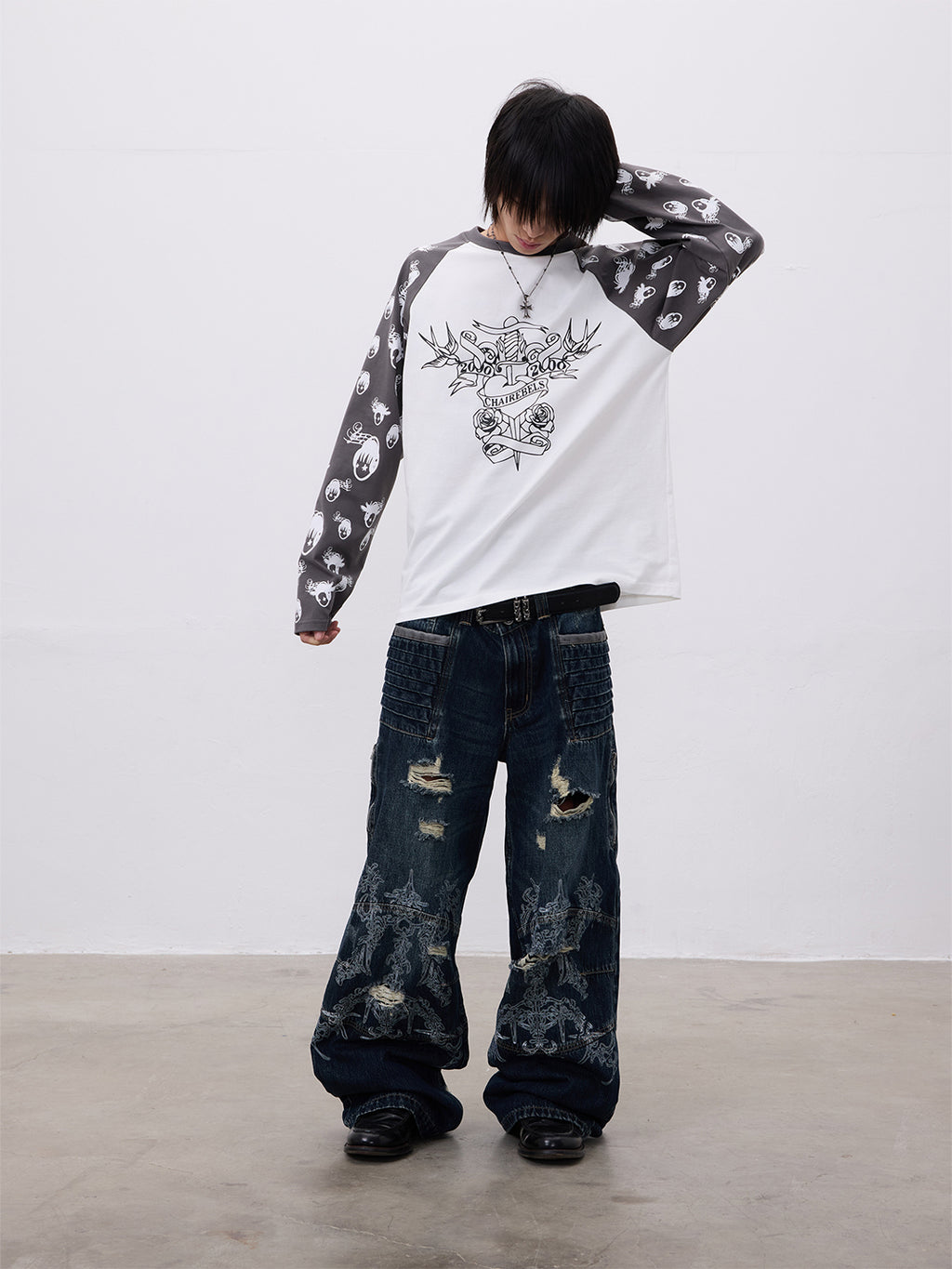 CHAI | Musical Note Portrait Print Long-Sleeved T-Shirt Skip to content