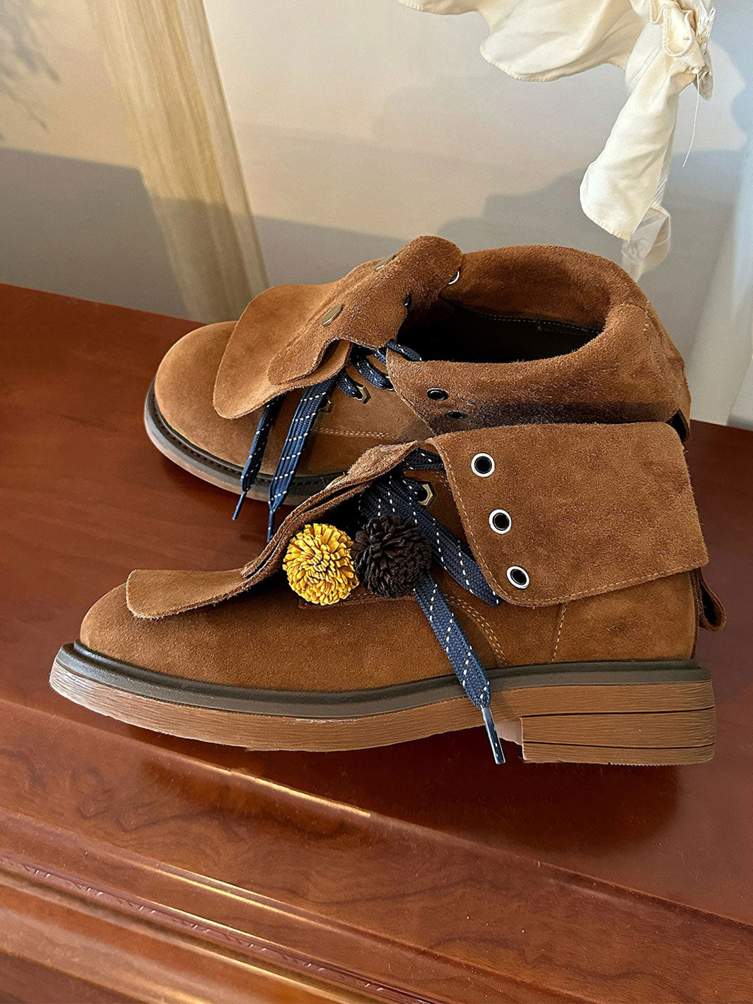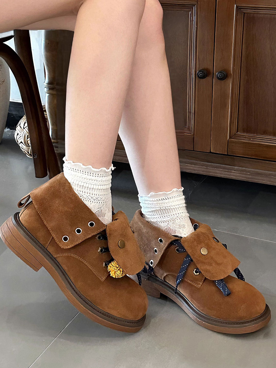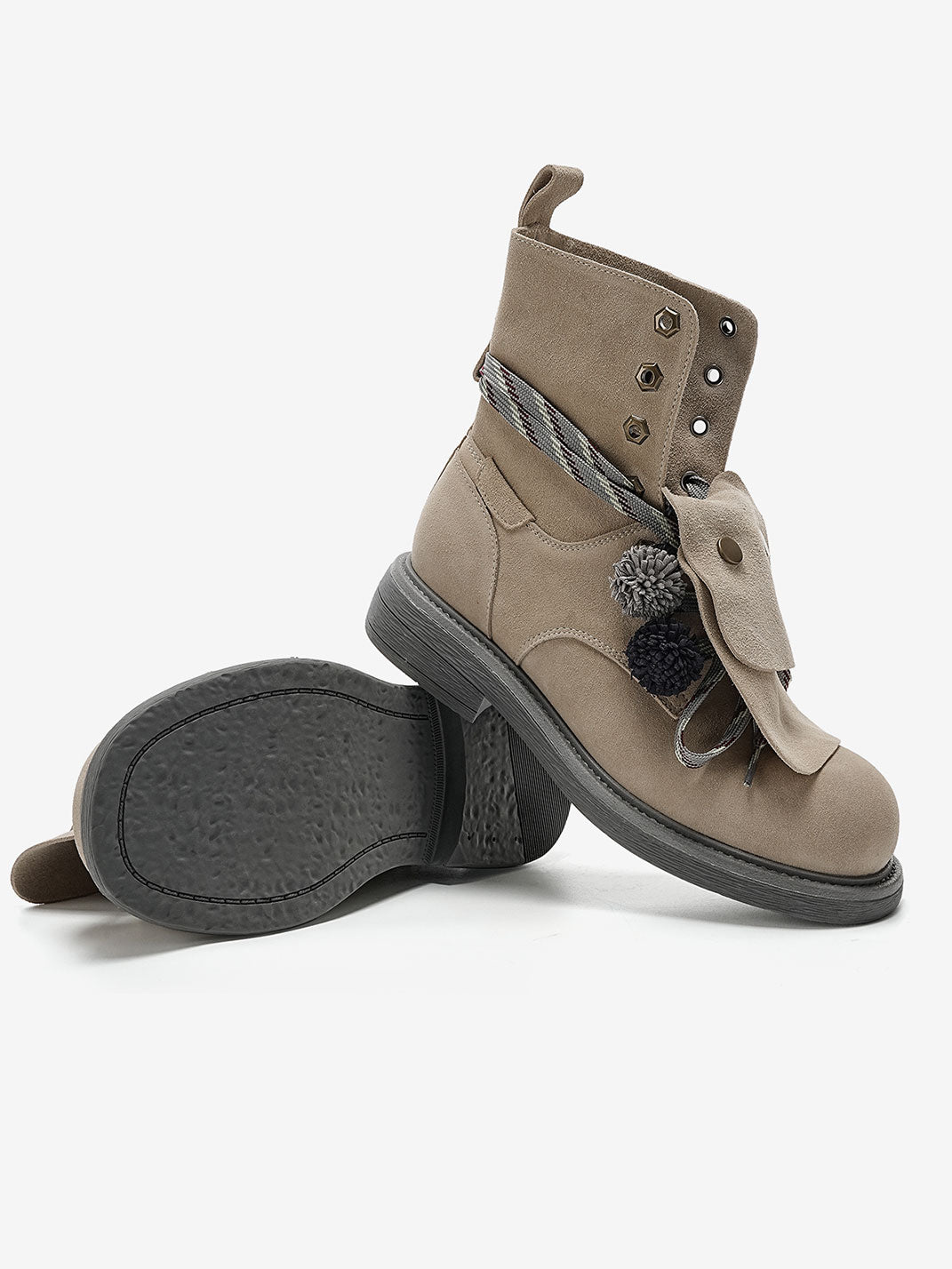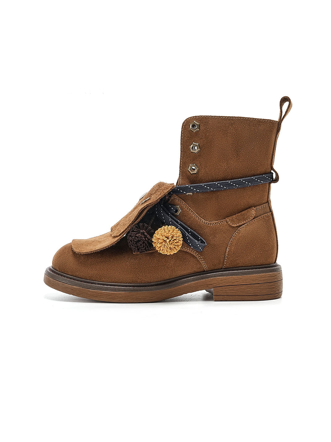 EBLAN丨Vintage Tassel Pendant Lace-up Ankle Boots