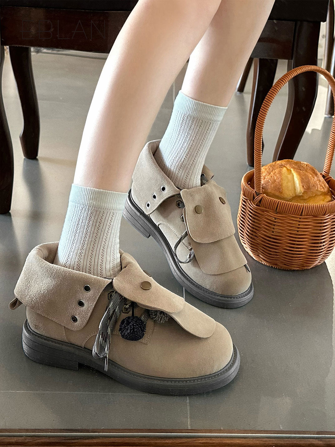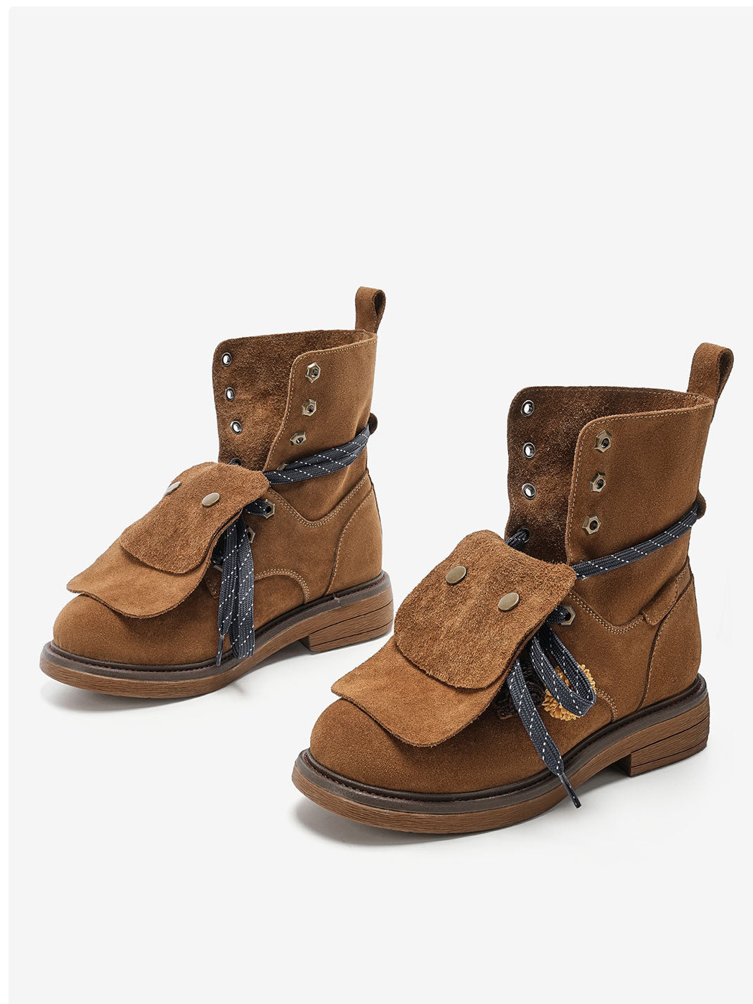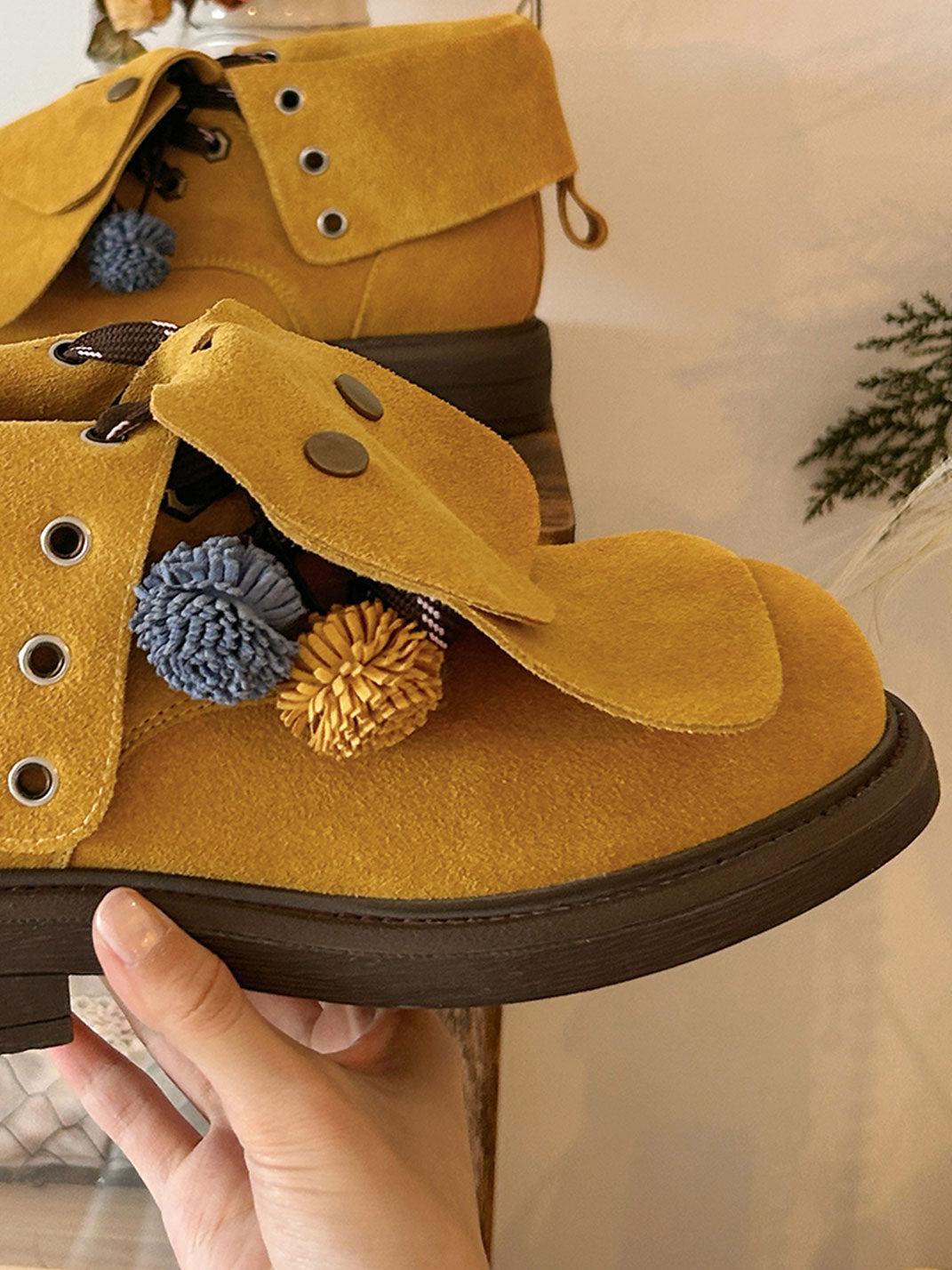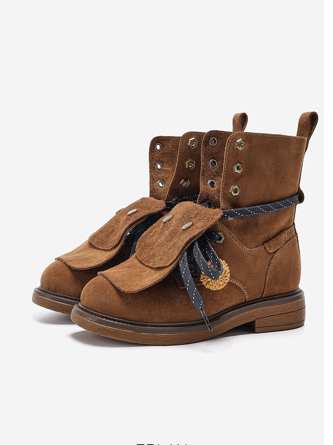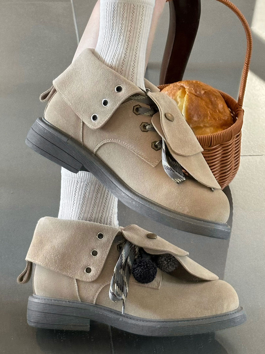 EBLAN丨Vintage Tassel Pendant Lace-up Ankle Boots
