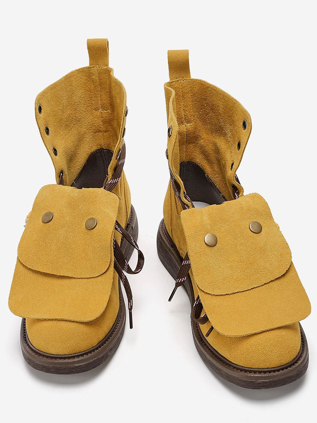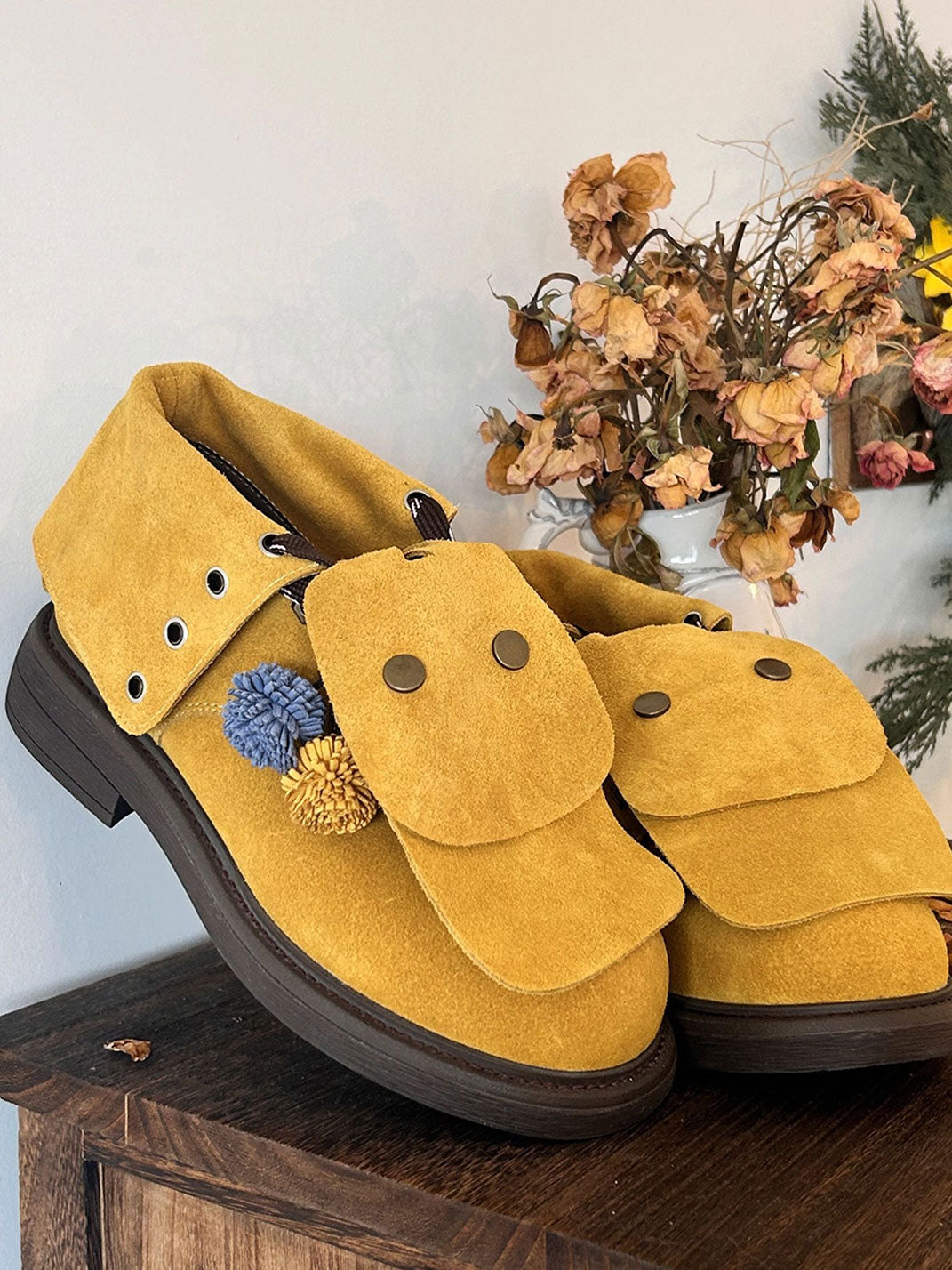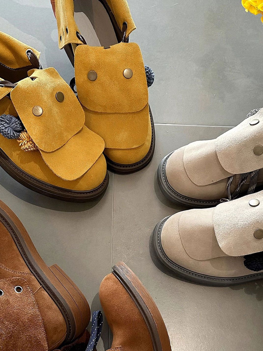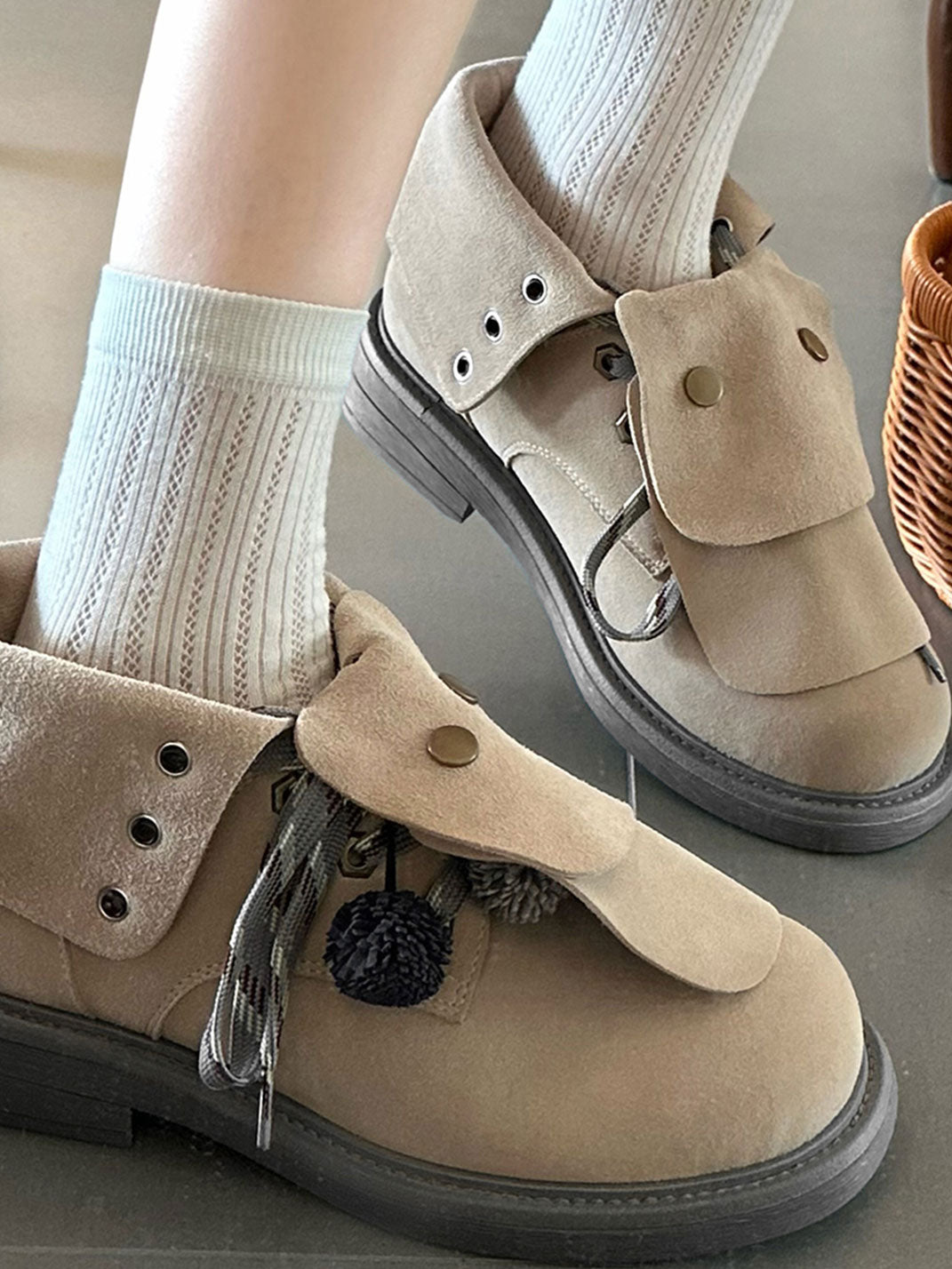 EBLAN丨Vintage Tassel Pendant Lace-up Ankle Boots