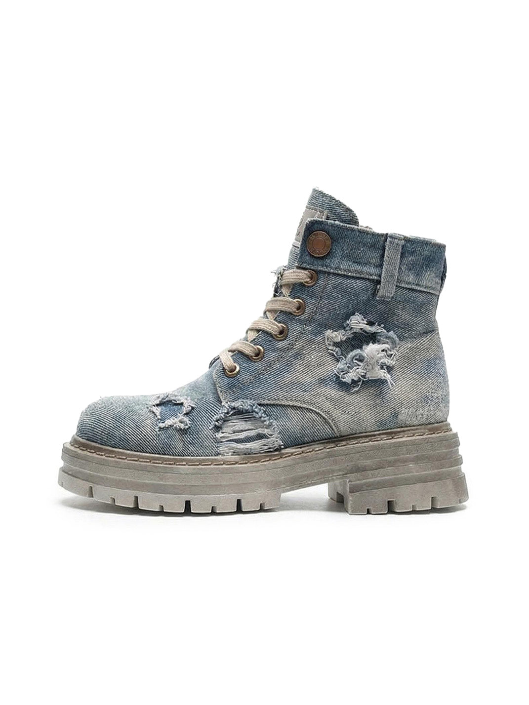 GSL | Ripped Demin Platform Boots with Ribbons
