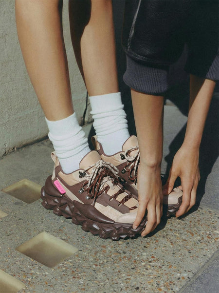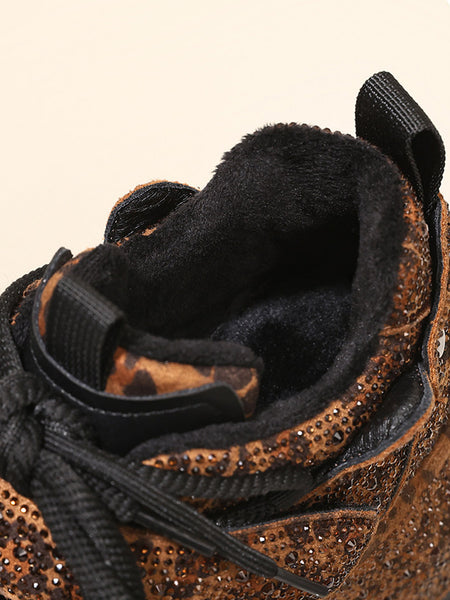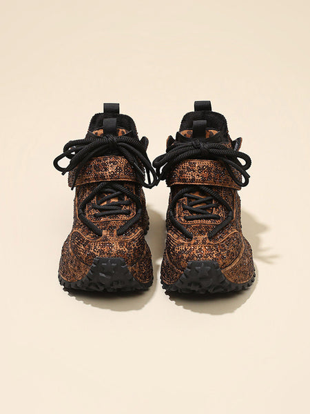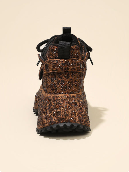 GRACE PANDA | Rhinestone Platform Sneakers-Brown