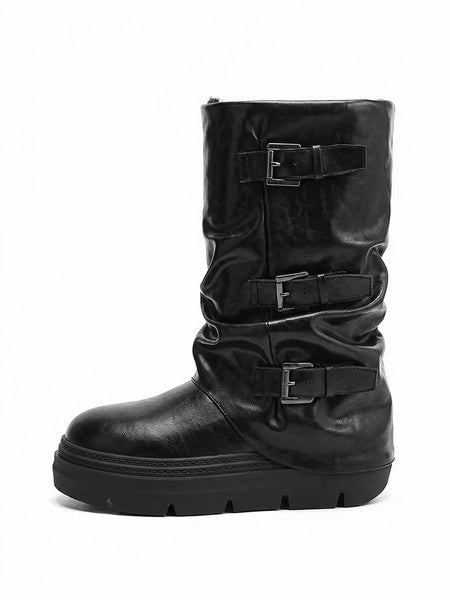 C.BANNER丨Belt Buckle Platform Mid-Calf Boots