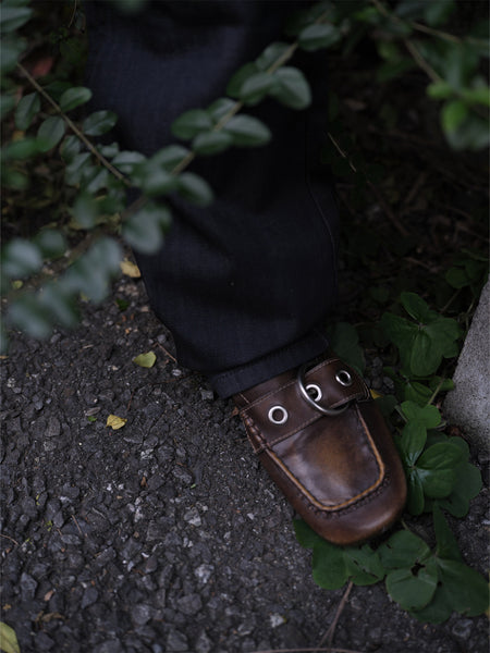 ECODAY | Lazy Brown Buckle Square Toe Loafers