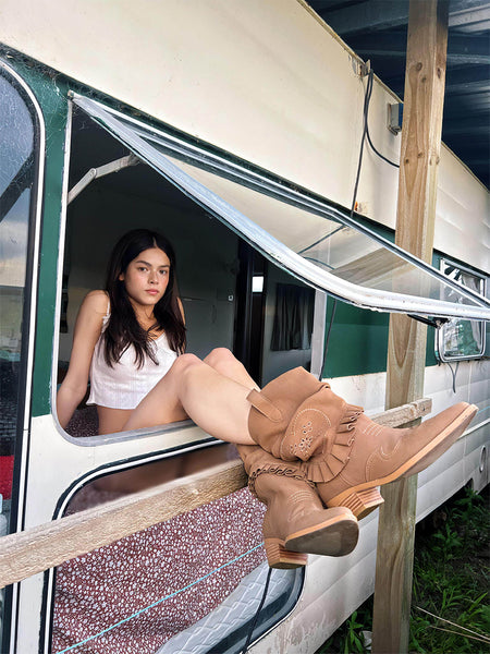ECODAY | Retro Embroidered Suede Slouch Boots