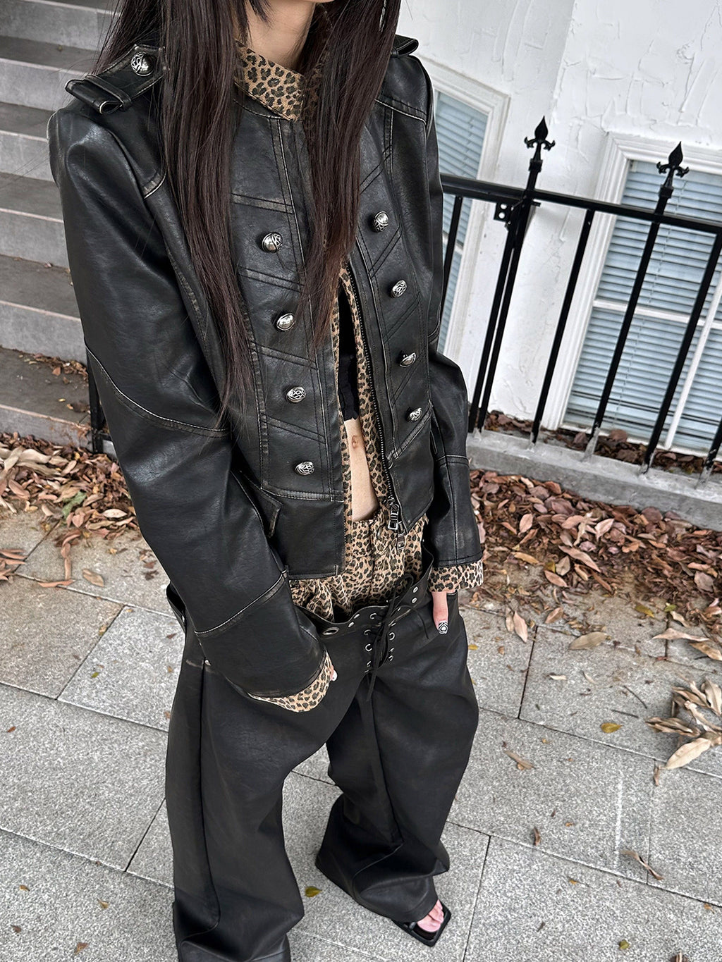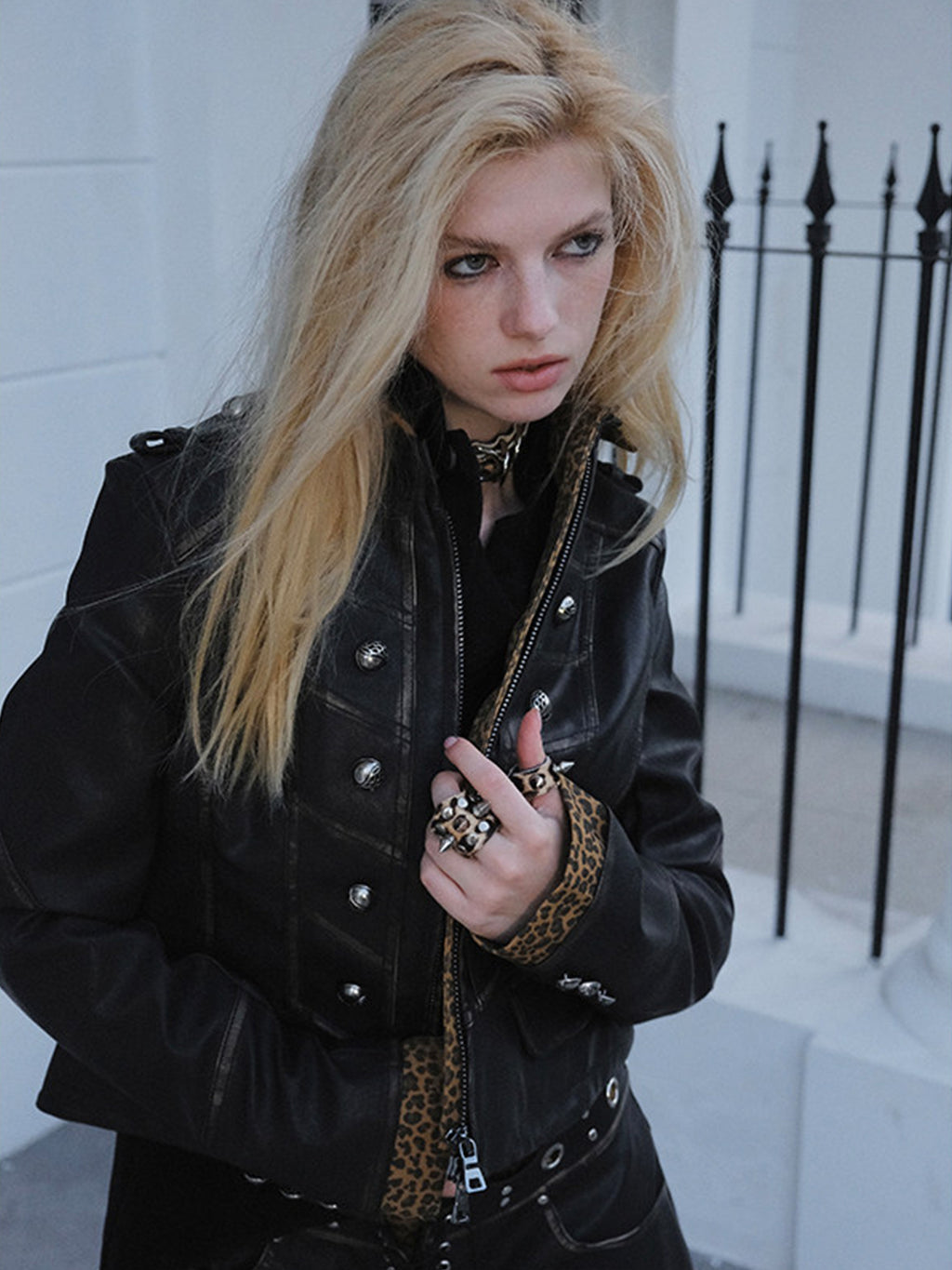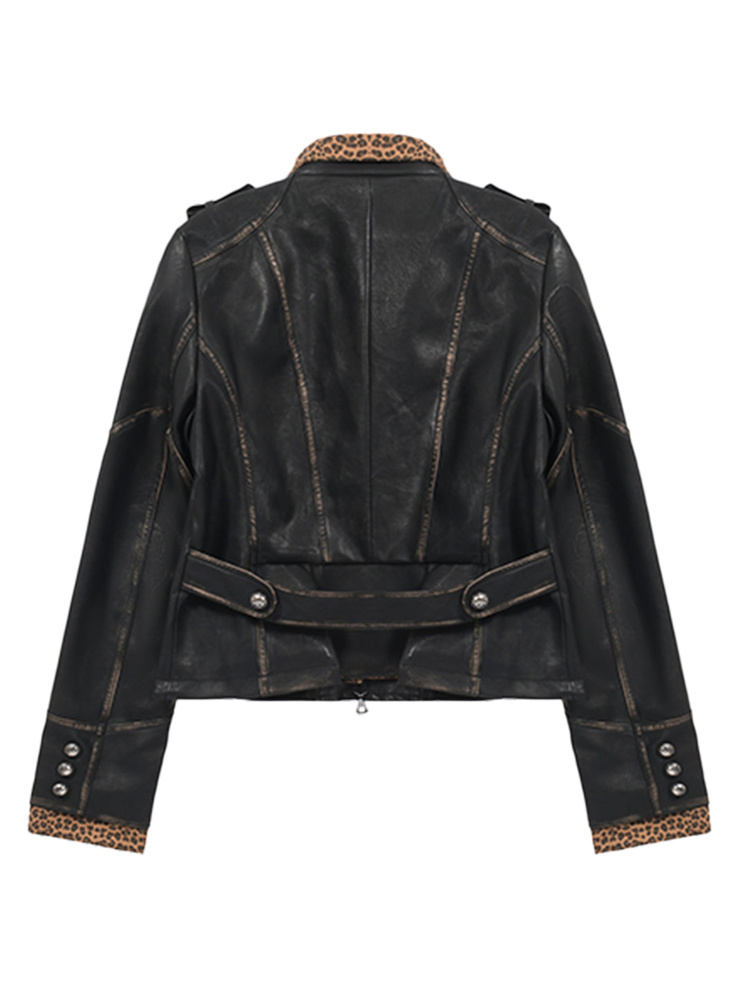 FULLTIDE | Patchwork Leopard Print Leather Jacket Skip to content