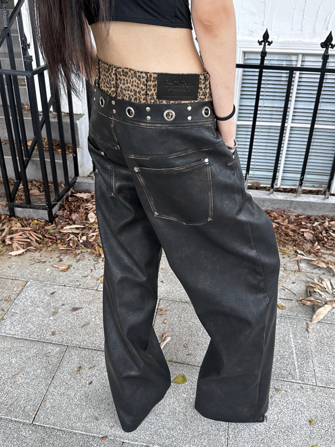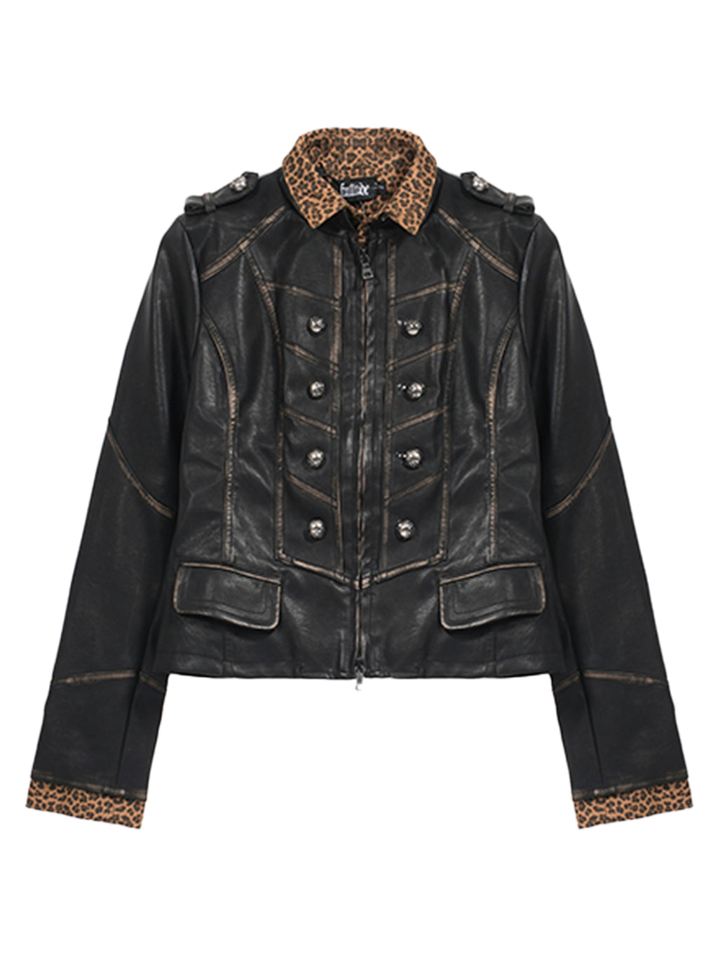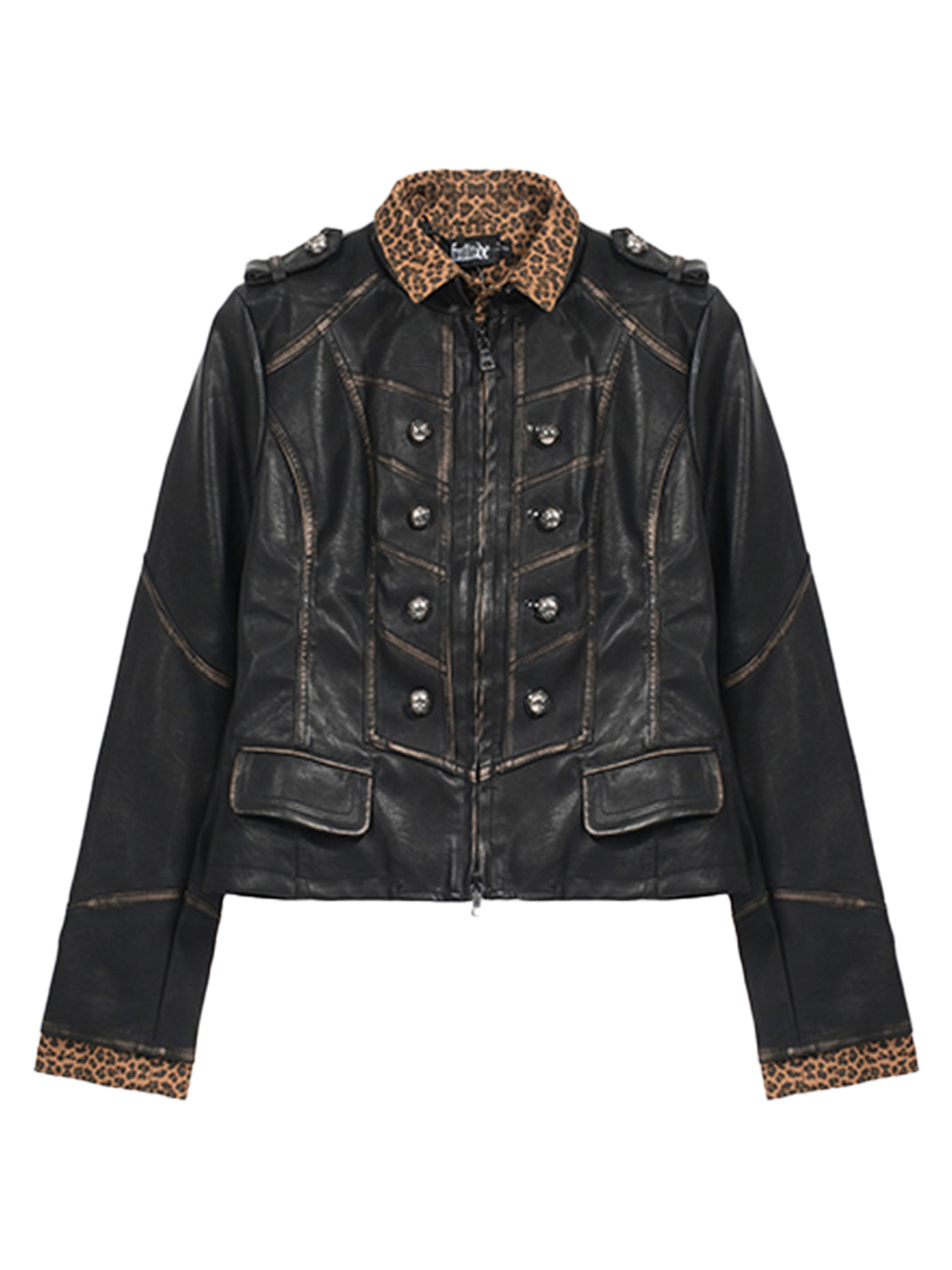 FULLTIDE | Patchwork Leopard Print Leather Jacket