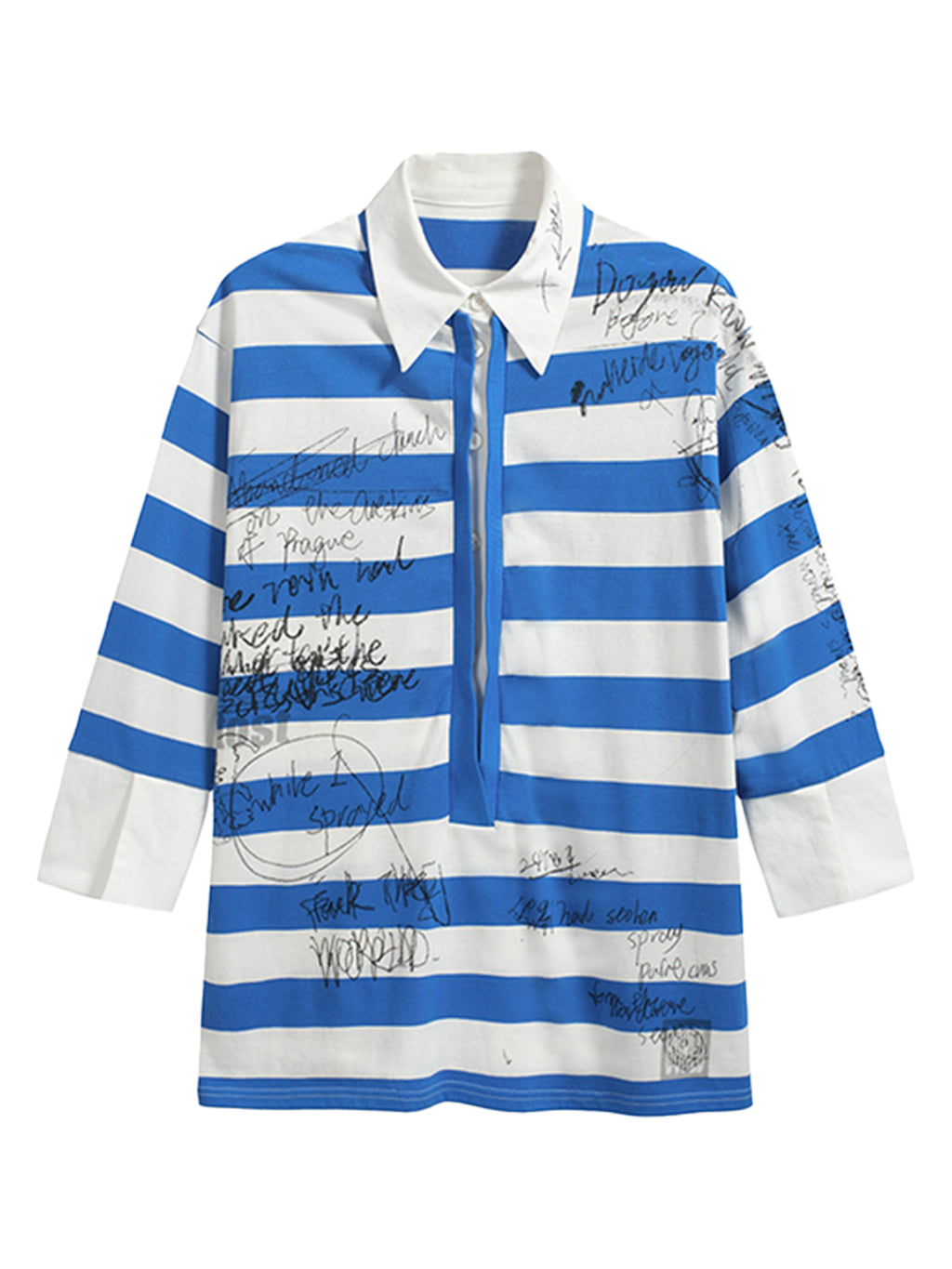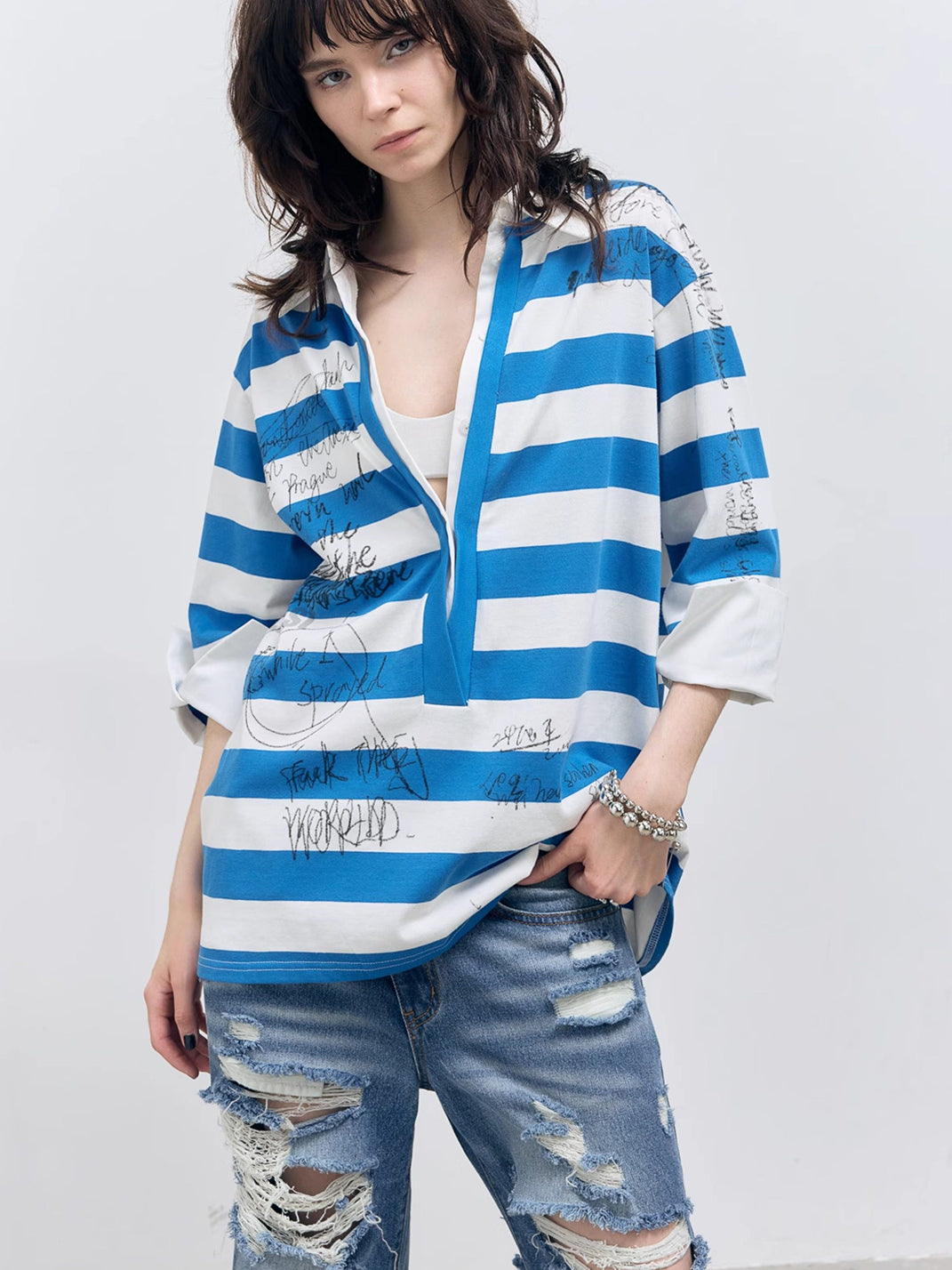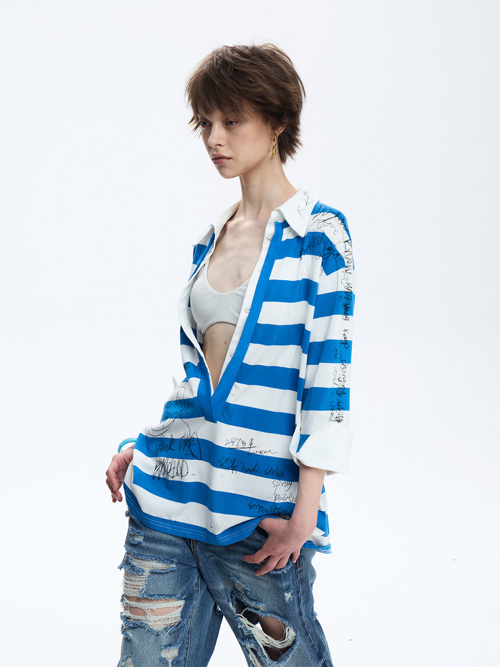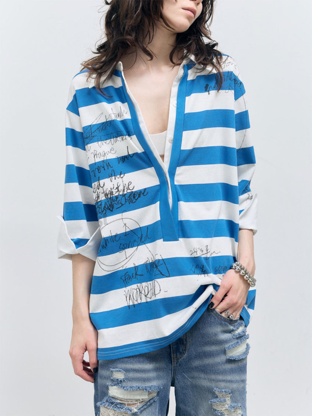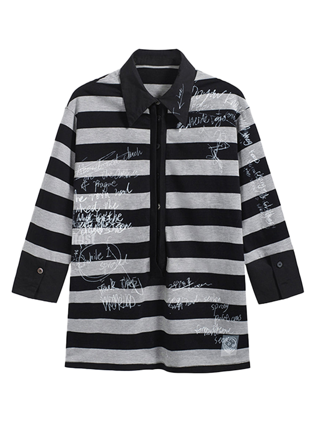 FULLTIDE | Striped Graffiti Faux Two-Piece Polo T-Shirt Skip to content