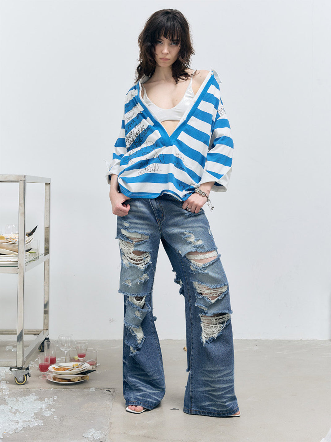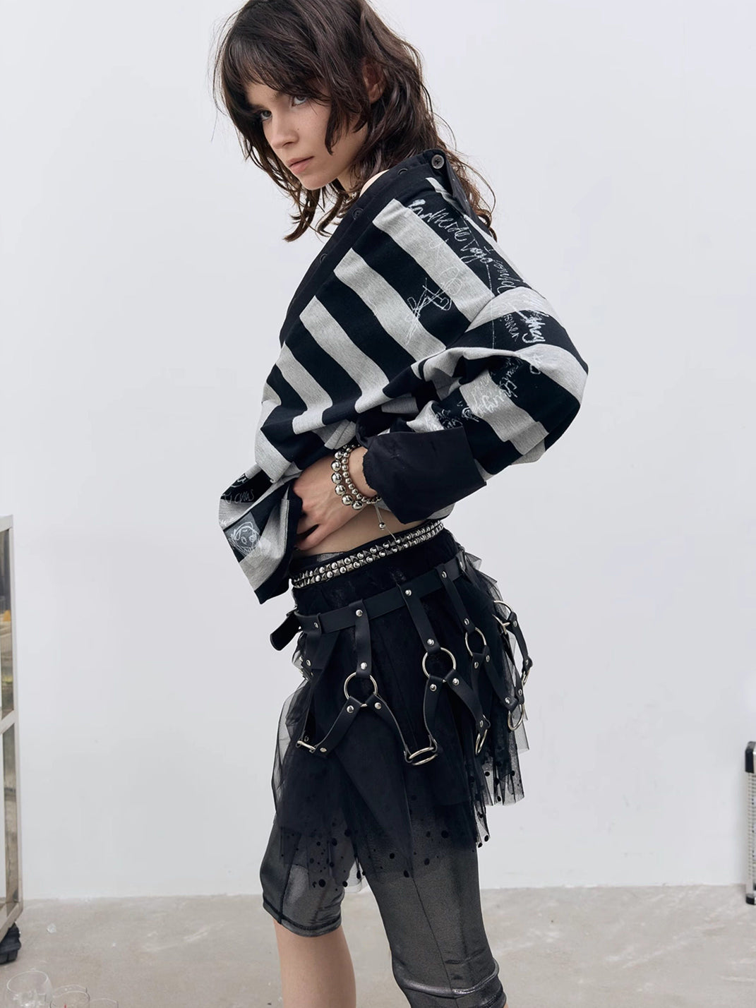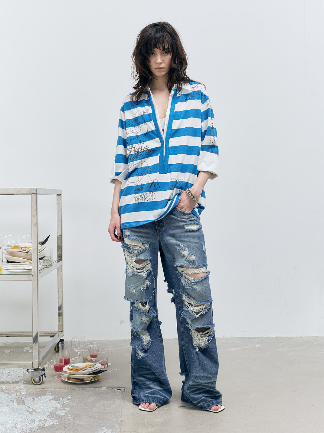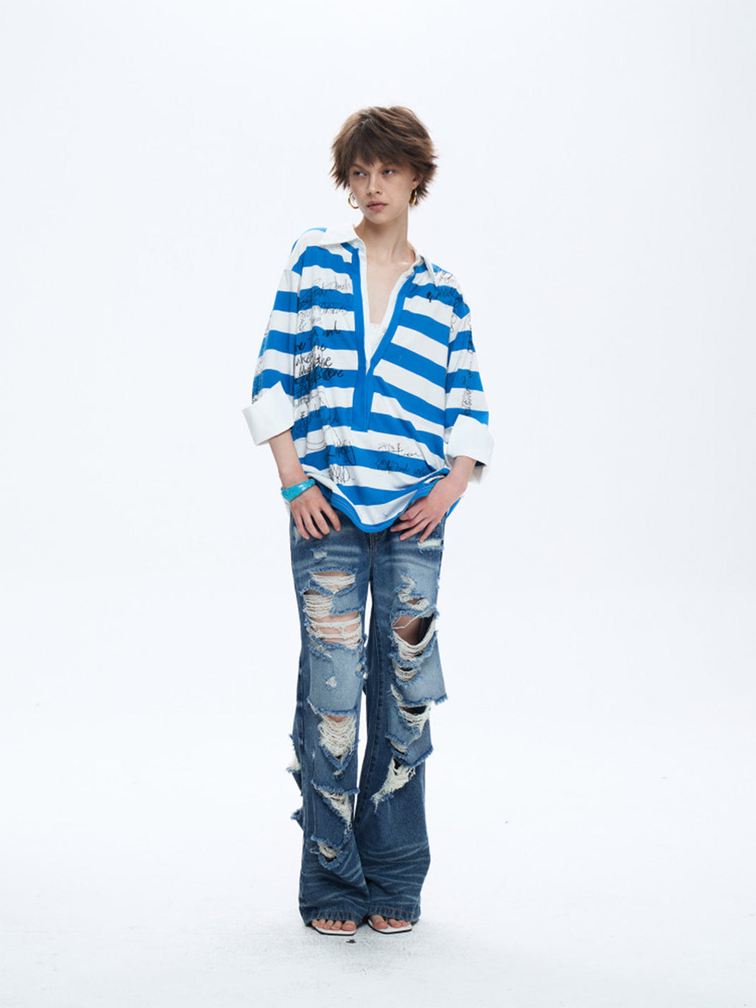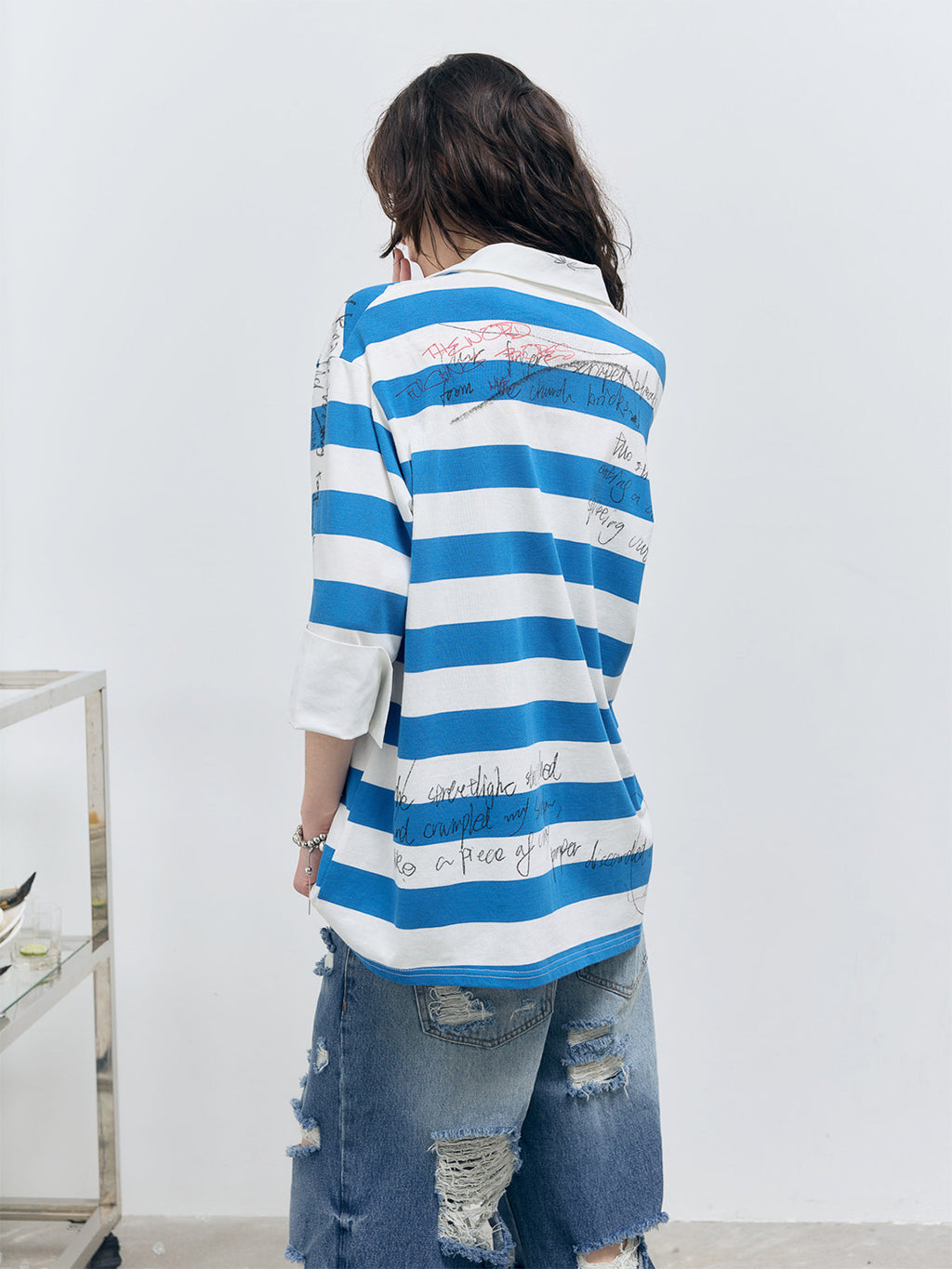 FULLTIDE | Striped Graffiti Faux Two-Piece Polo T-Shirt Skip to content