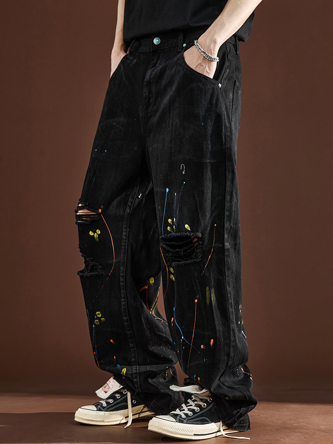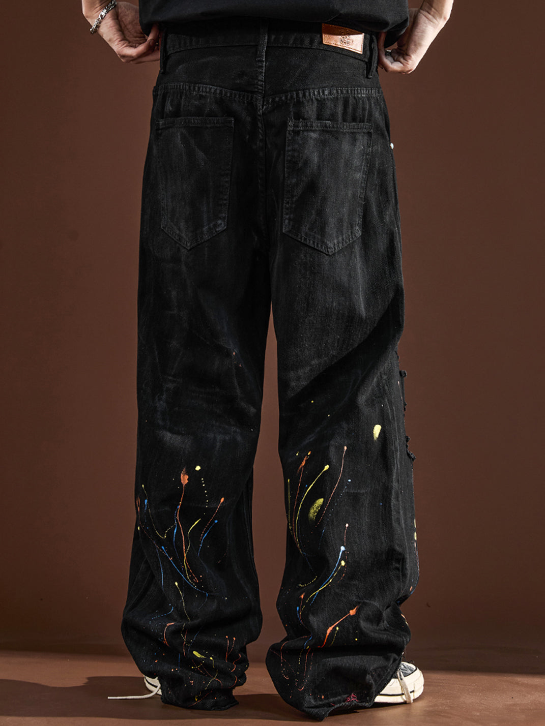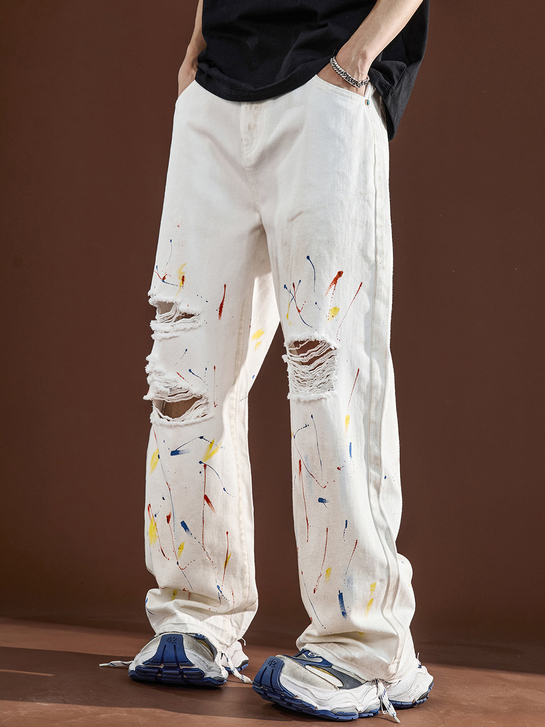 GURBAKS | Street Style Paint Splatter Ripped Wide-Leg Jeans Skip to content