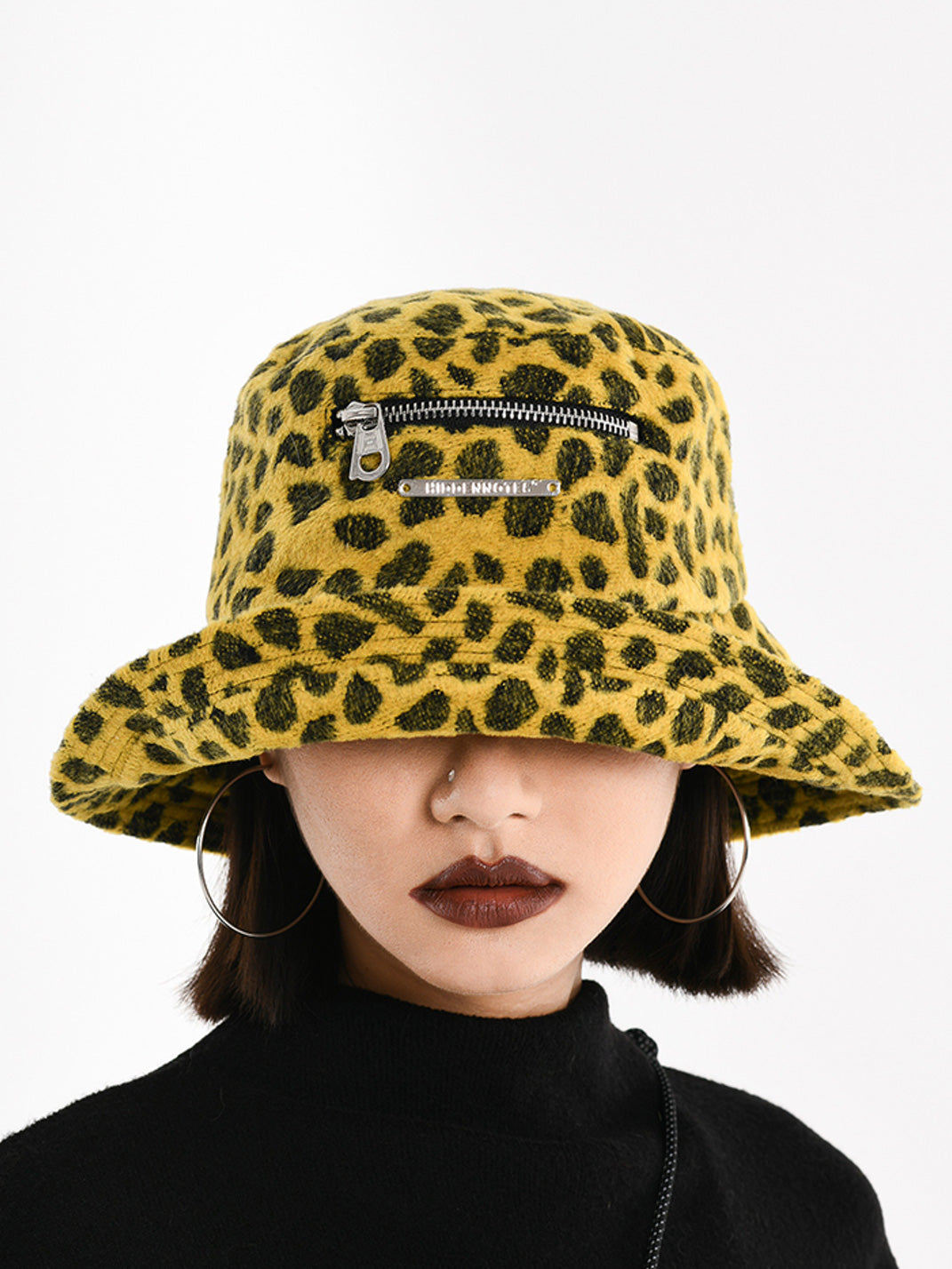 HIDDENNOTES | Yellow Leopard Zipper Pocket Bucket Hat Skip to content