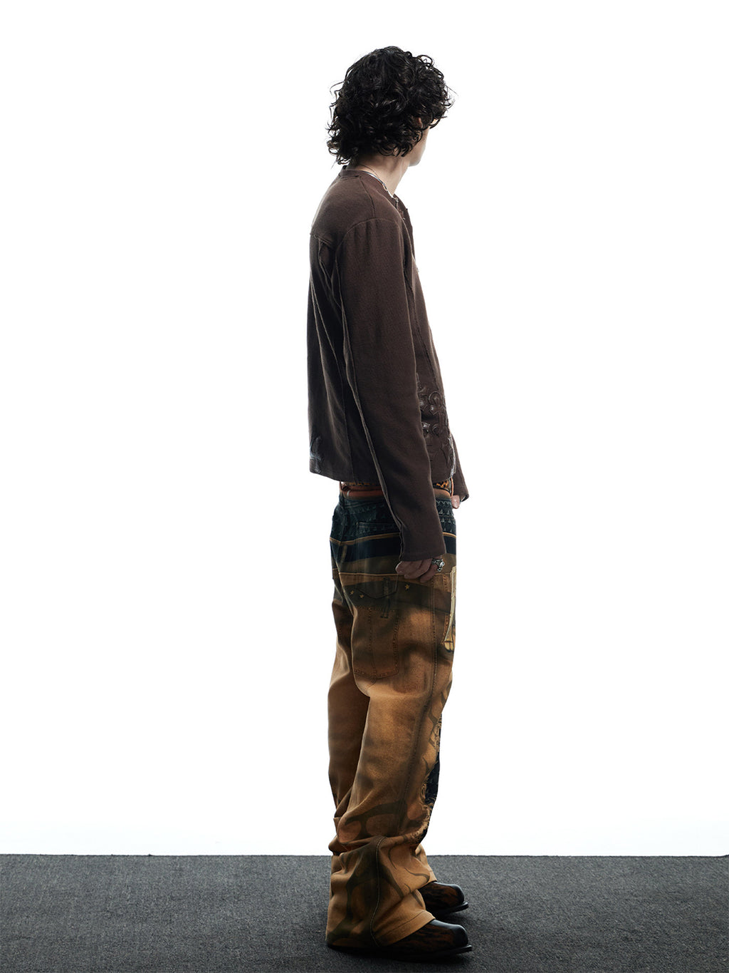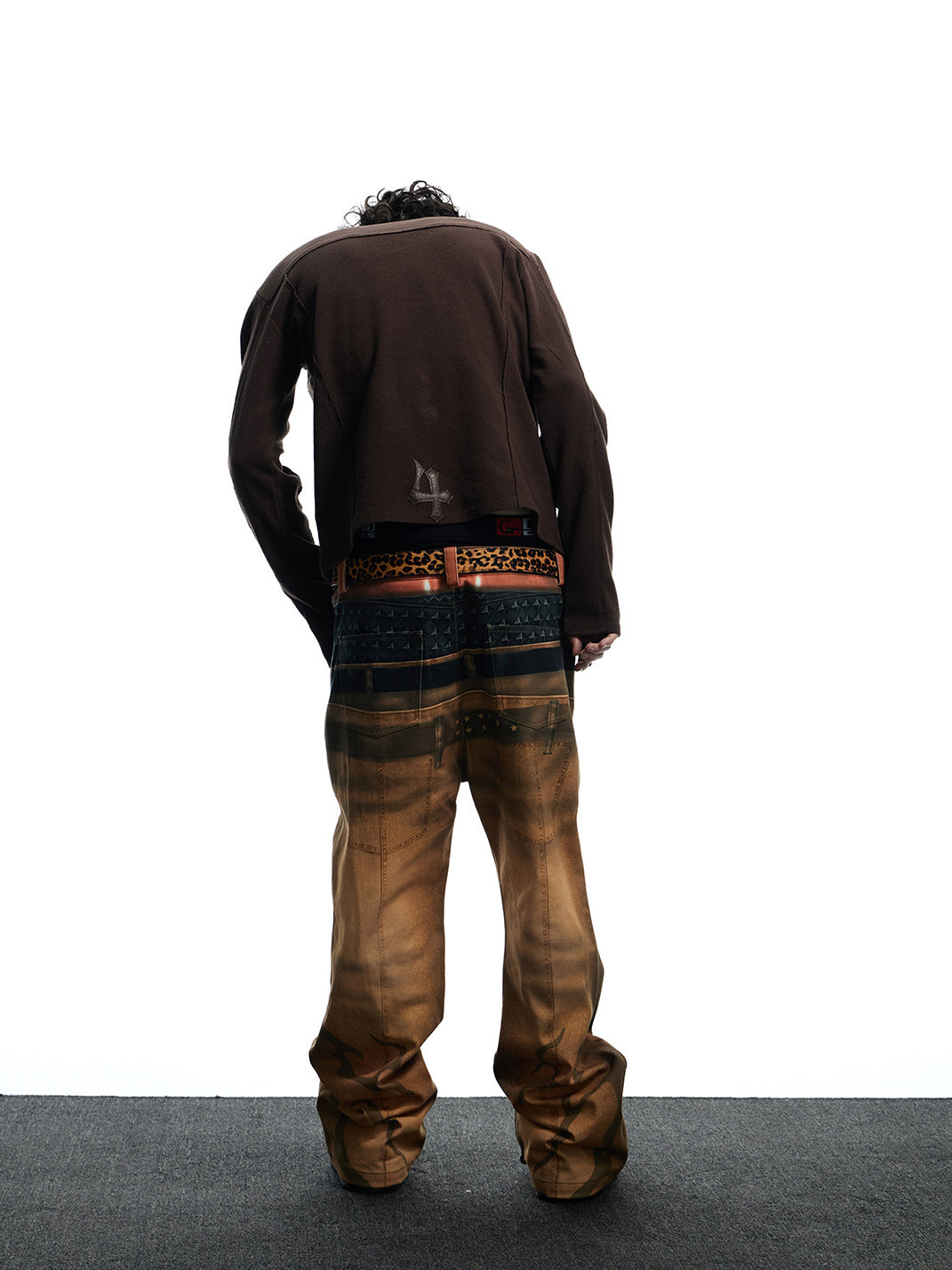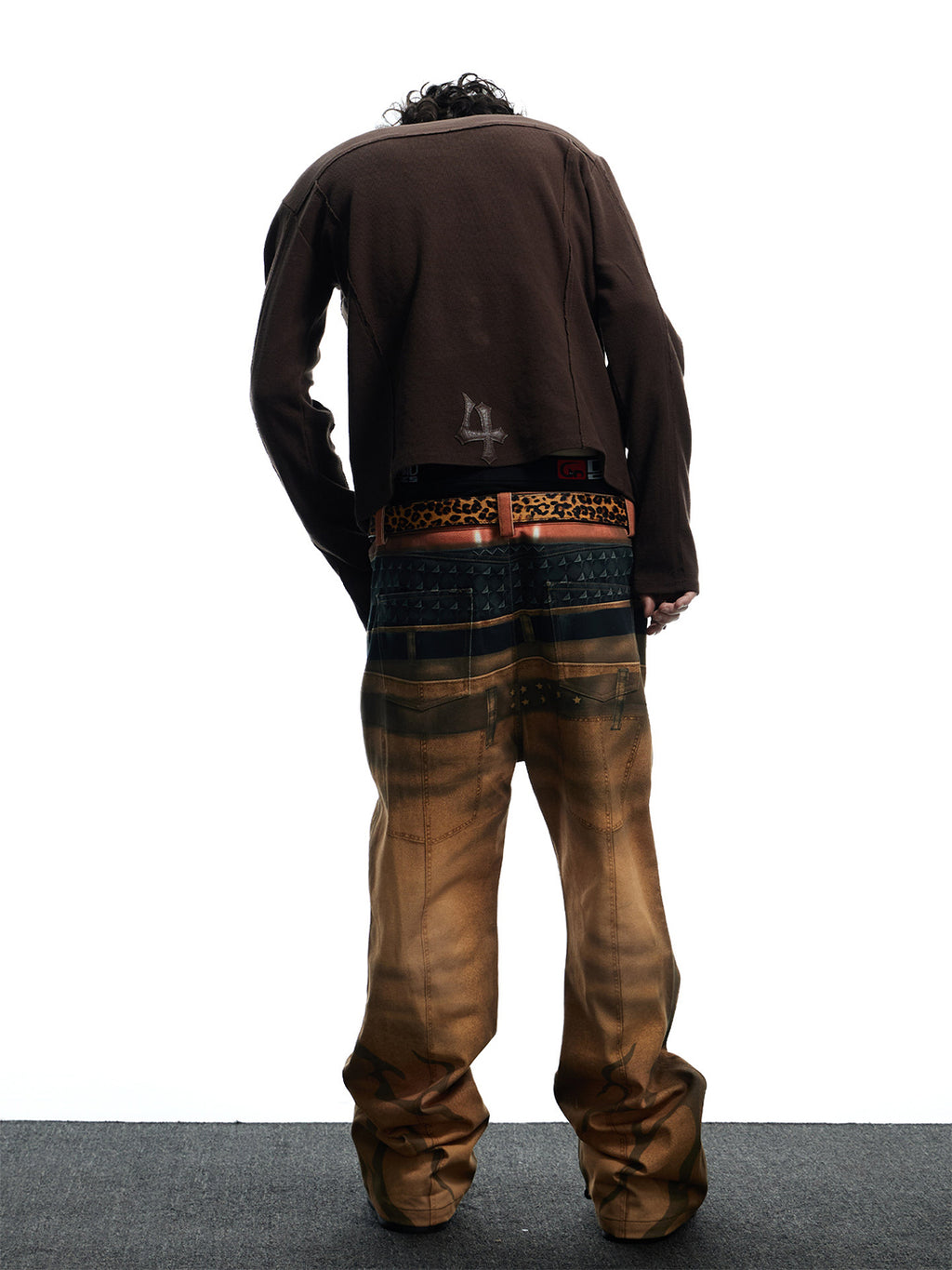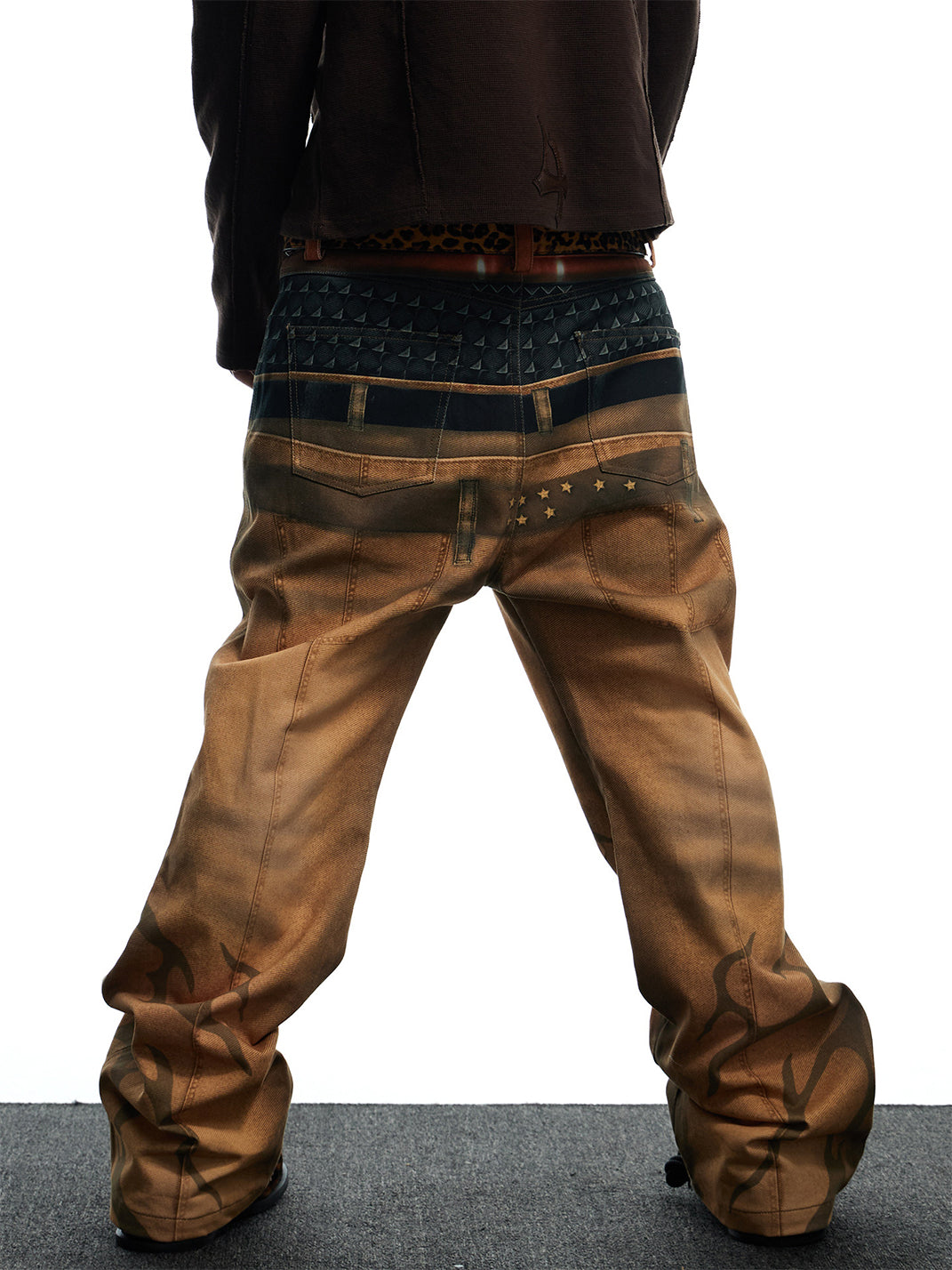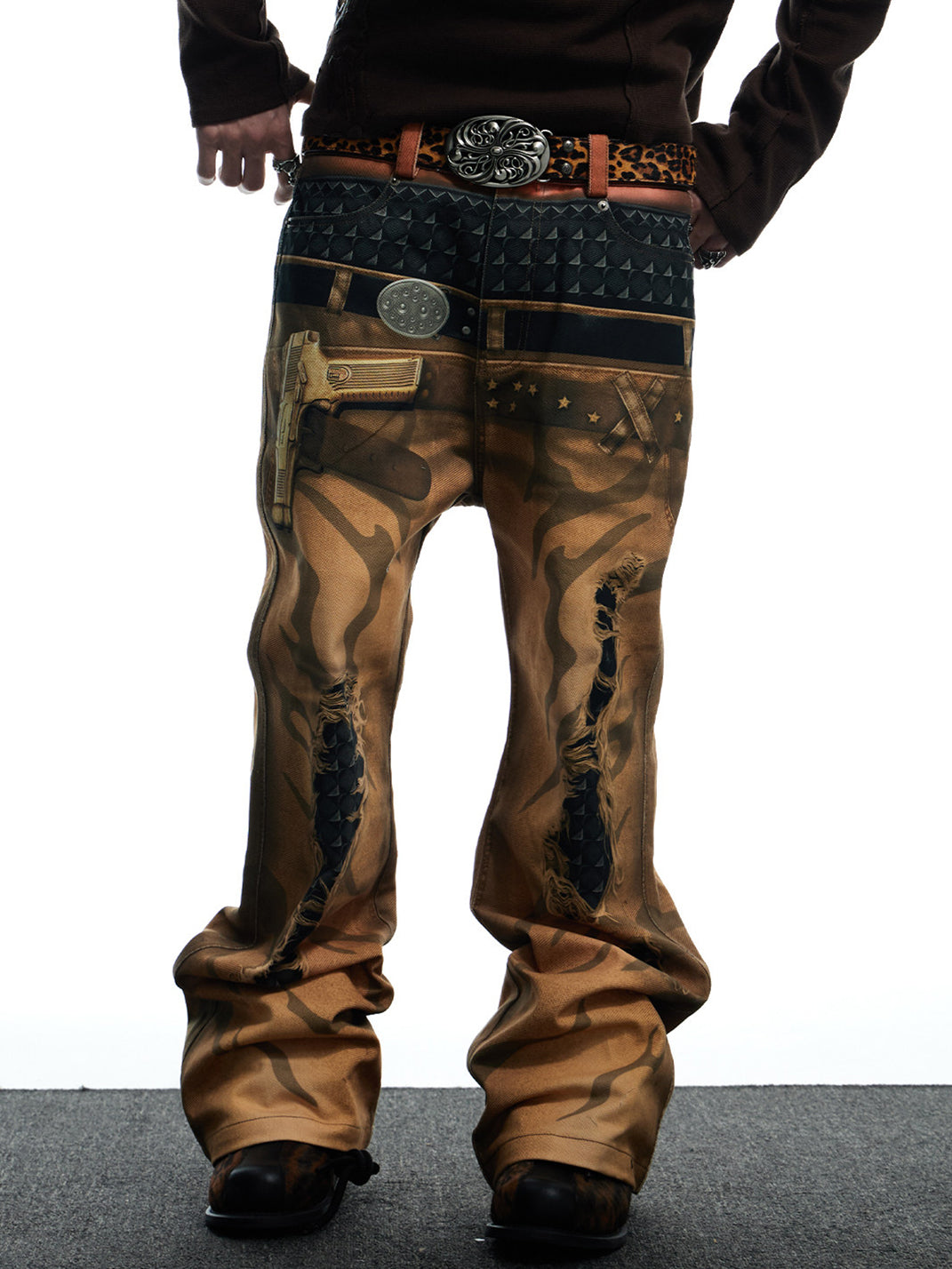 DND4DES | Printed Double Waistband Pistol Tiger Stripe Jeans-Khaki