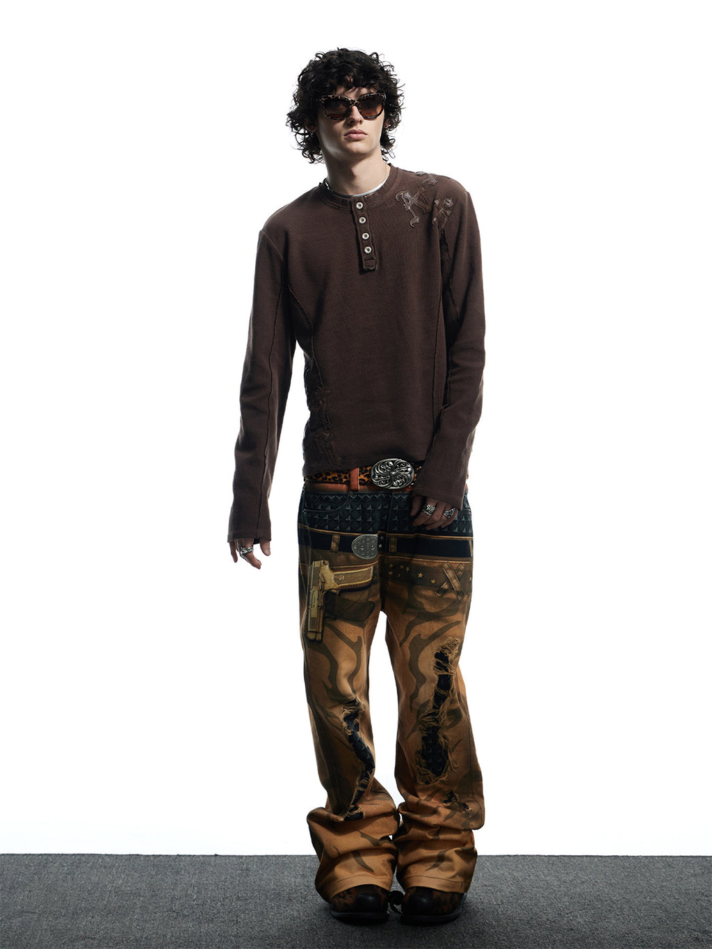 DND4DES | Printed Double Waistband Pistol Tiger Stripe Jeans-Khaki Skip to content