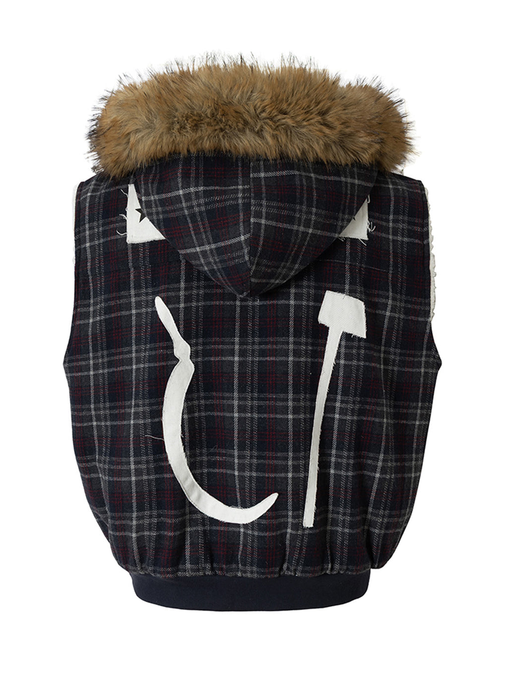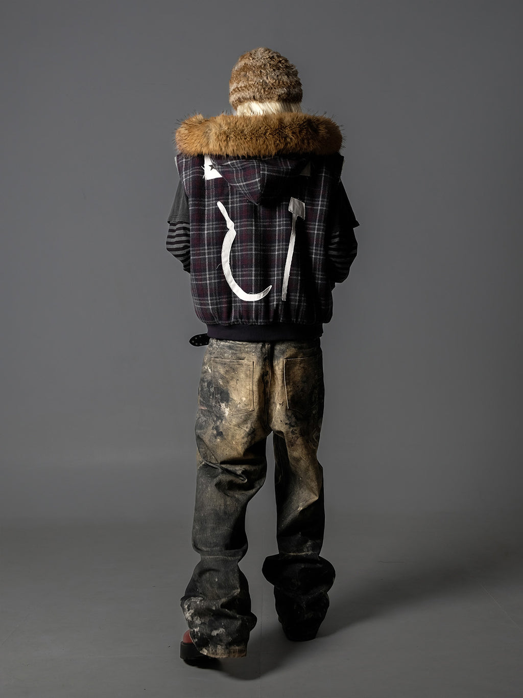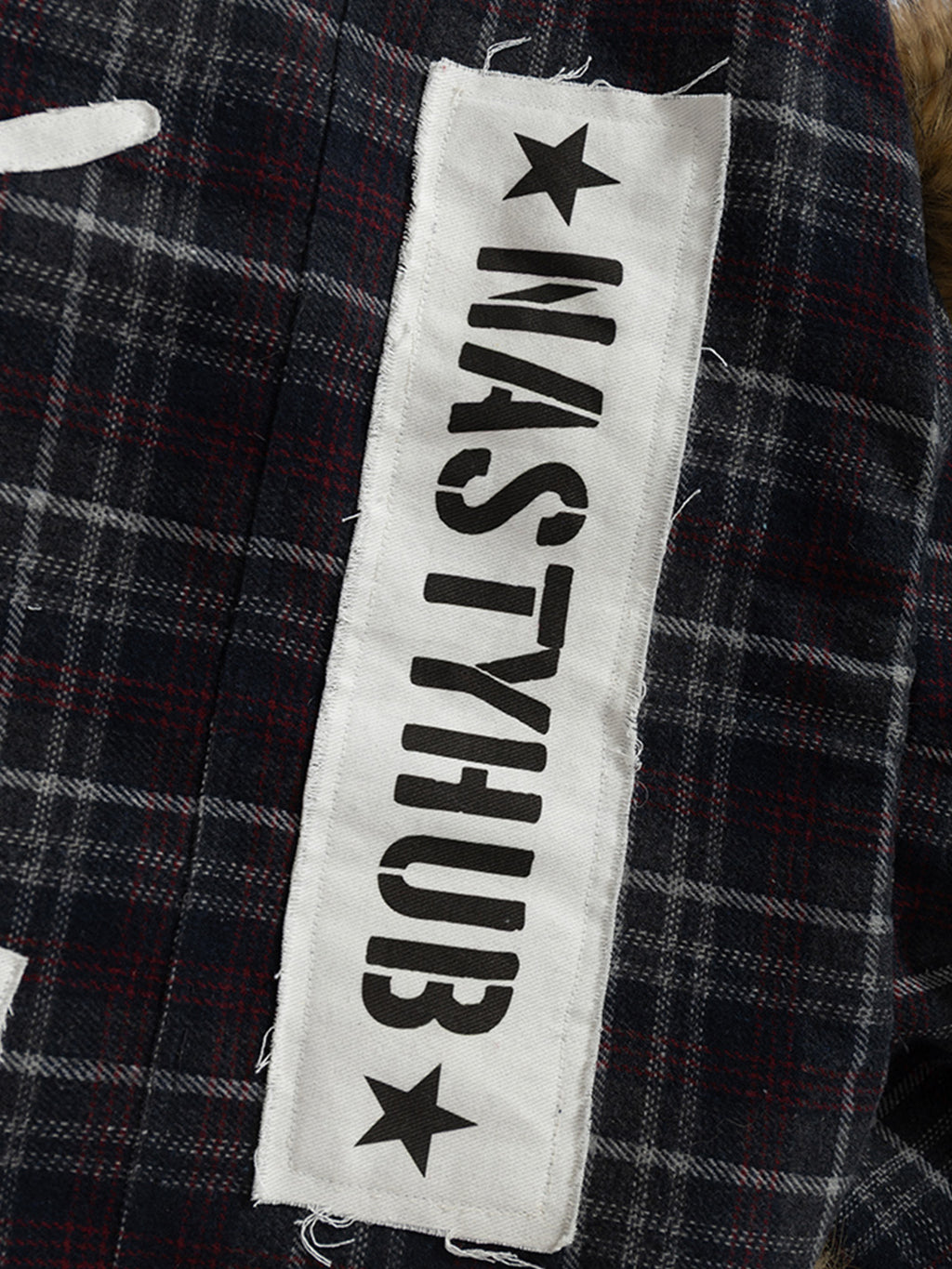 Made with high-quality felt plaid fabric for the outer layer and 950g high-quality lamb's wool for the inner layer, this garment offers a structured and warm fit. The wide silhouette is flattering for all body types, from tall to short and slim, and enhances proportions. The patch print design on the back adds a unique touch, while the large fur collar adds a trendy element. It's the perfect choice for both stylish outfits and everyday commutes.
