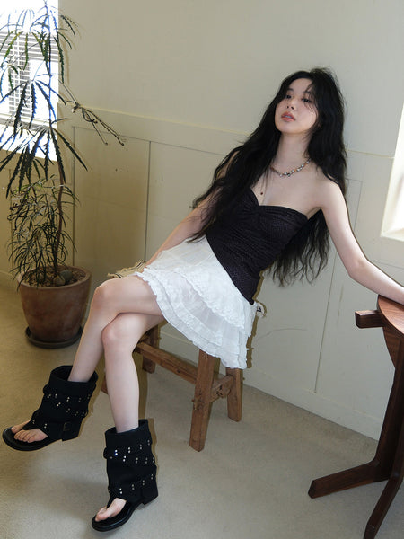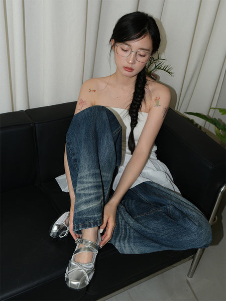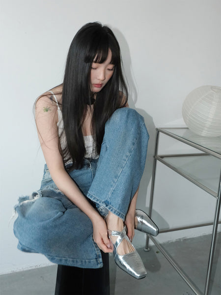 Mooreyu | Retro Square-Toe Cross Flat Shoes