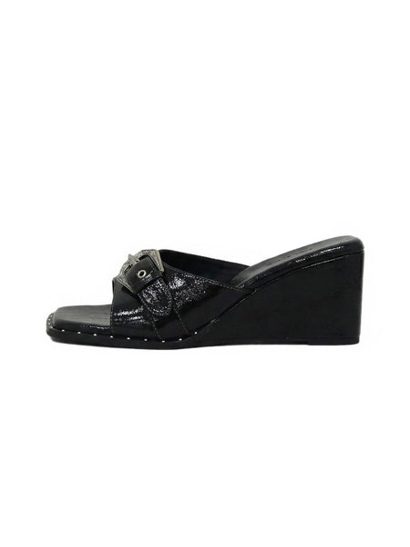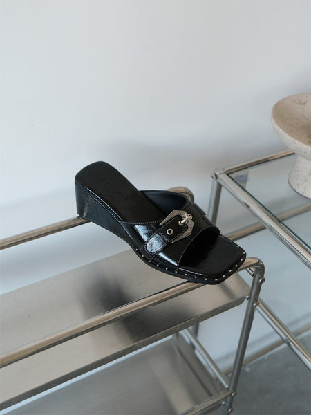 Mooreyu | Genuine Leather Square-Toe Wedge Sandals