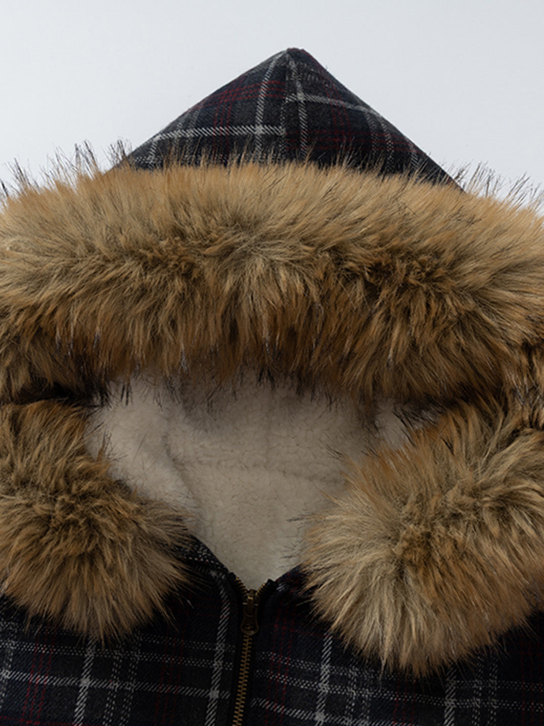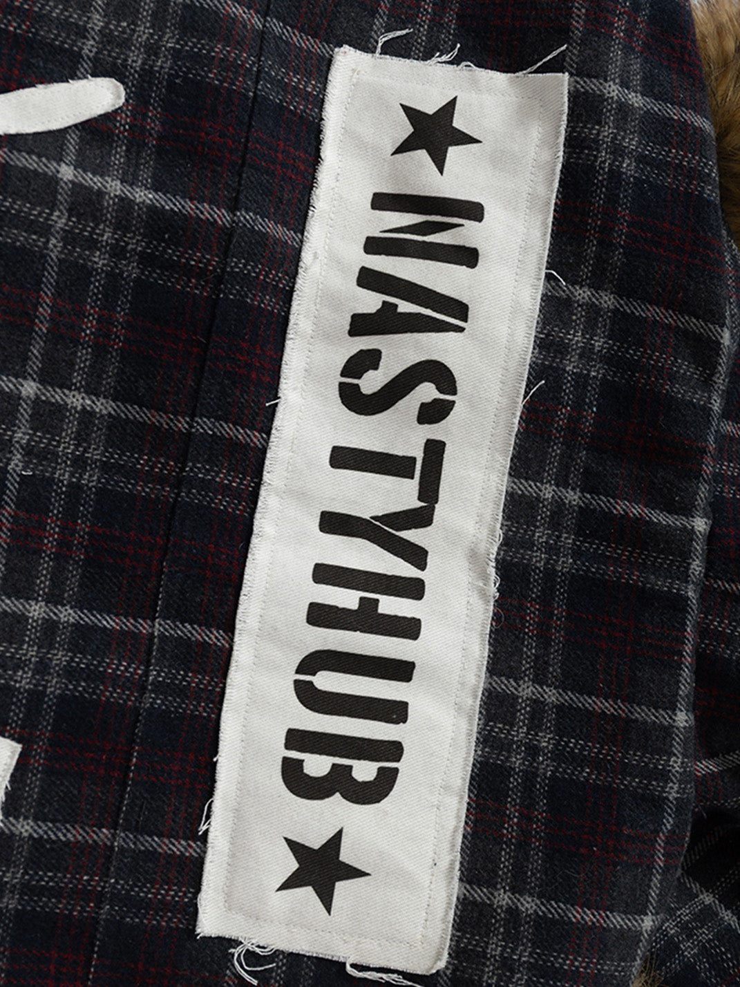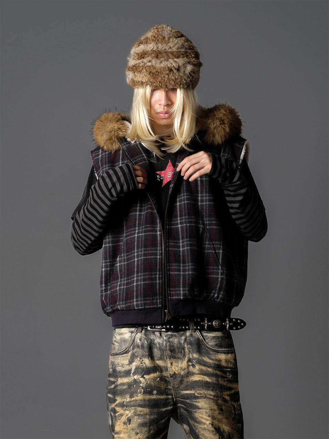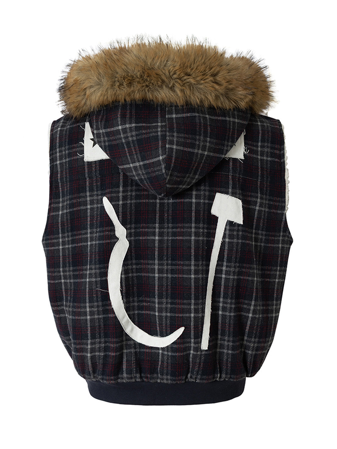 Nastyhub | Vintage Washed Plaid Print Hooded Vest