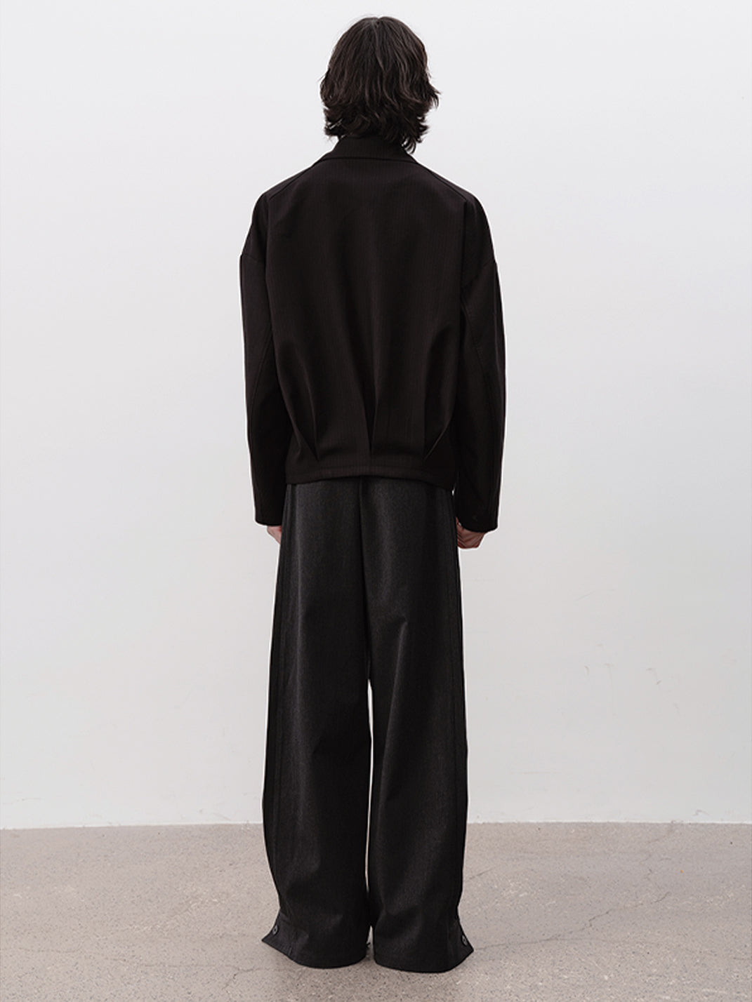 Side welt pockets add a clean, practical touch, while pleated detailing at the hem cinches the waist for a refined finish.