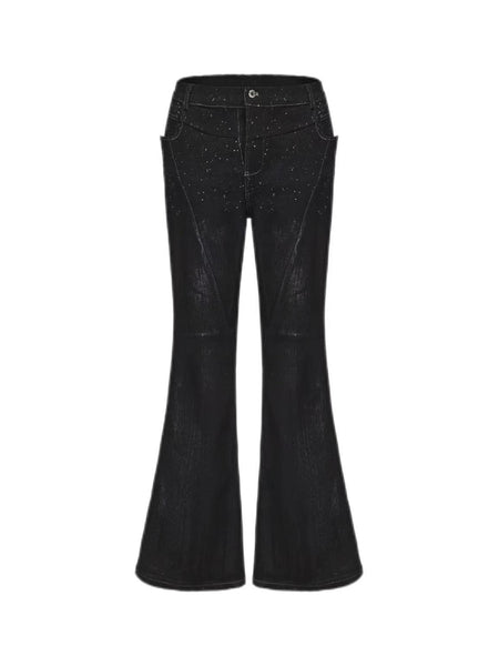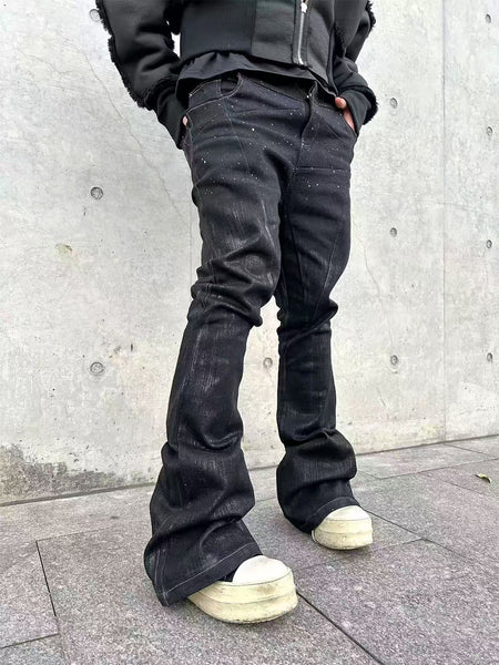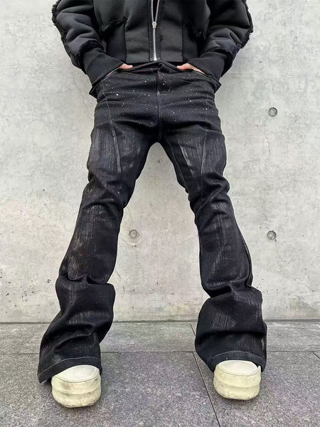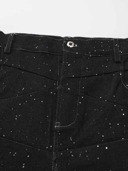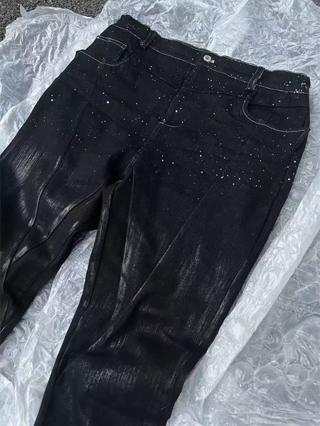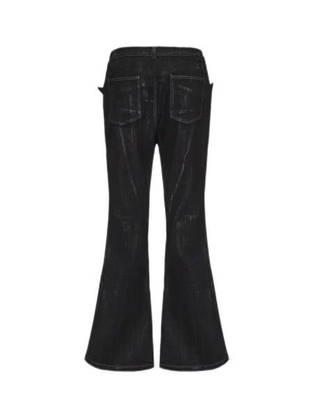 Disark│Silver Glitter Pentagram Waxed Flared Pants