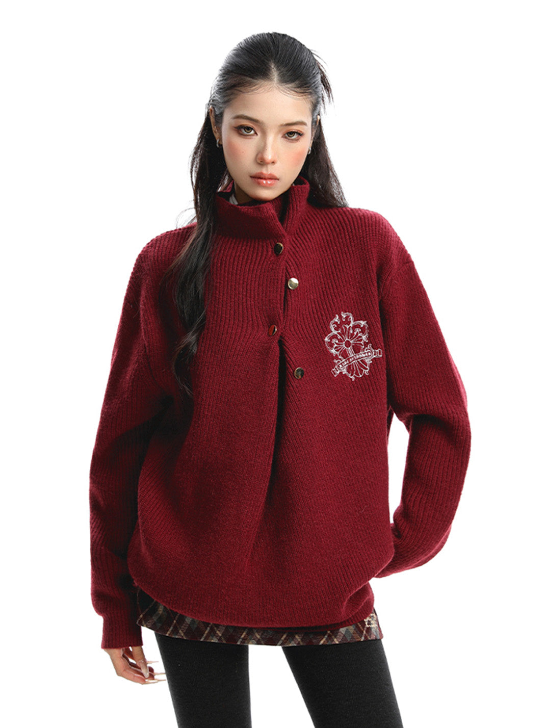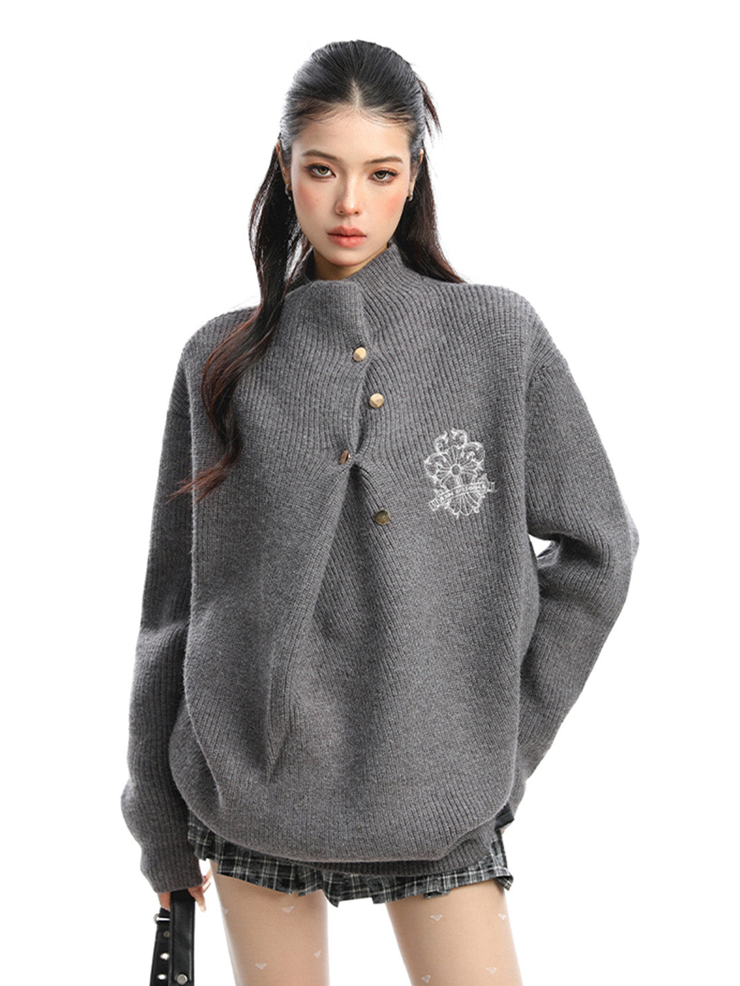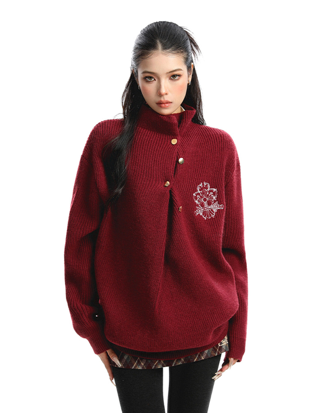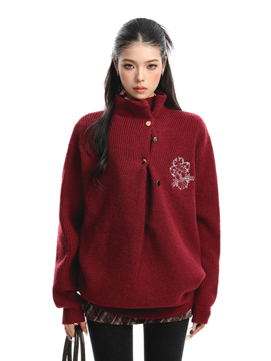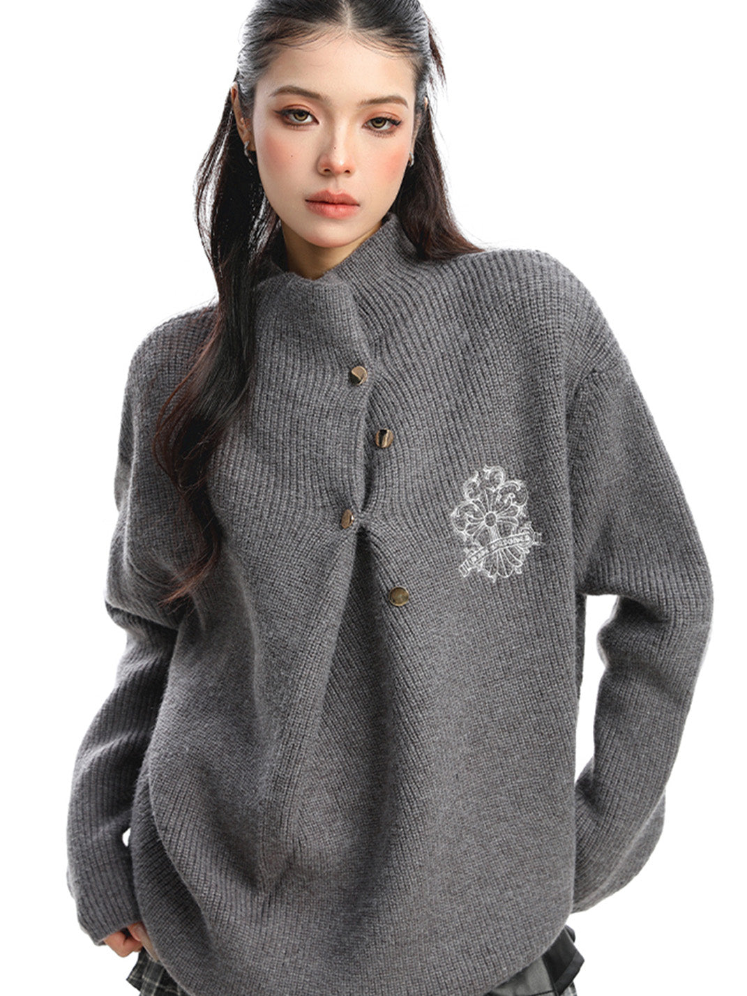 BIGGOLD | Irregular Neckline Embroidered Sweater