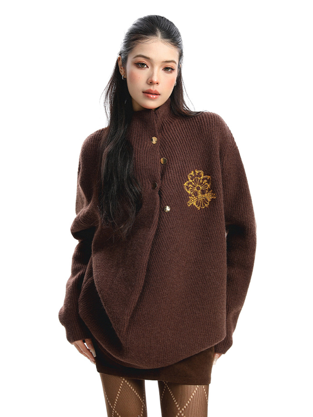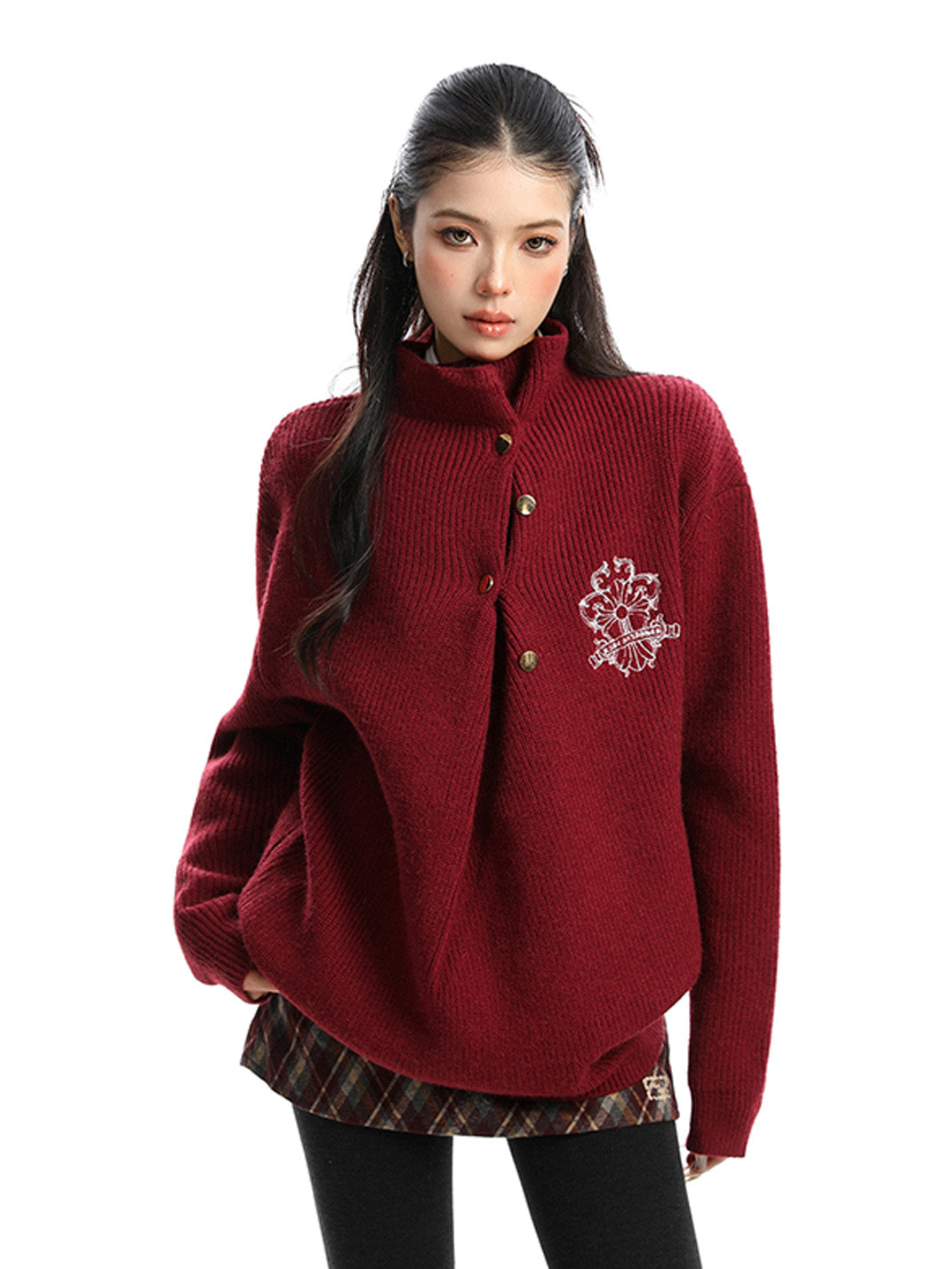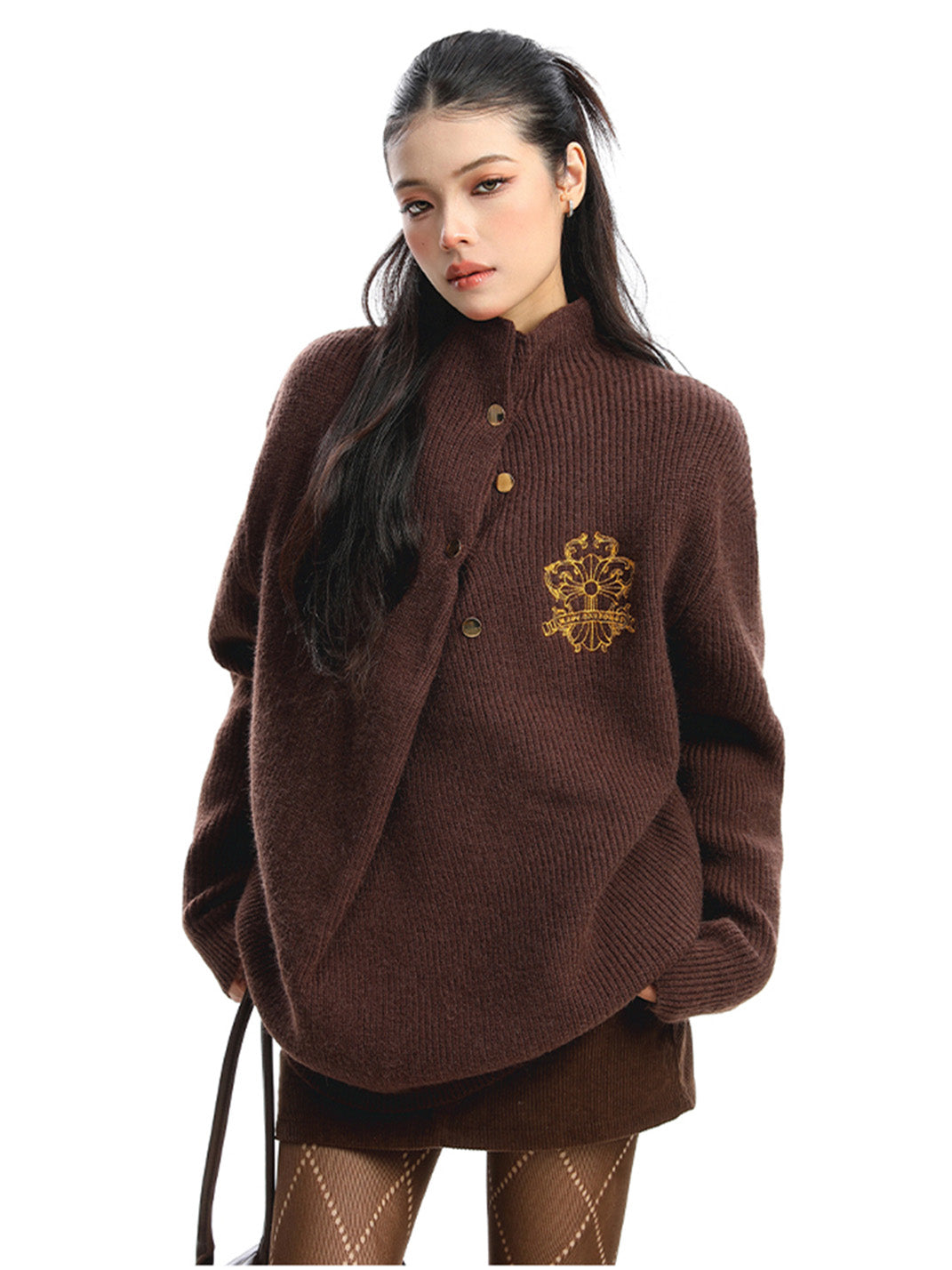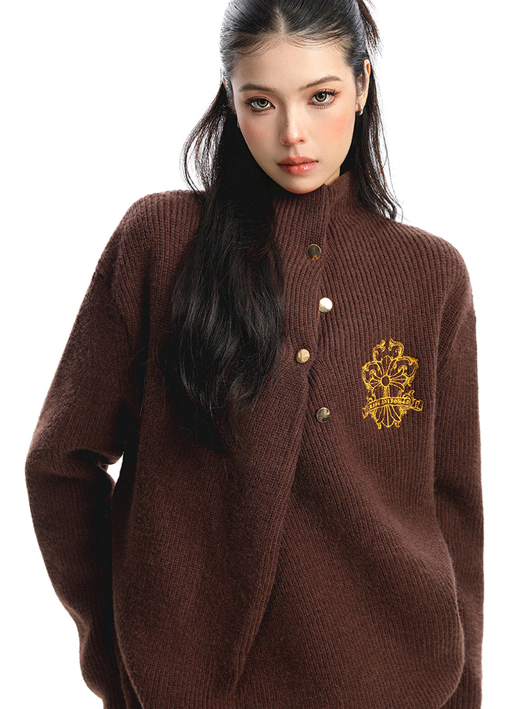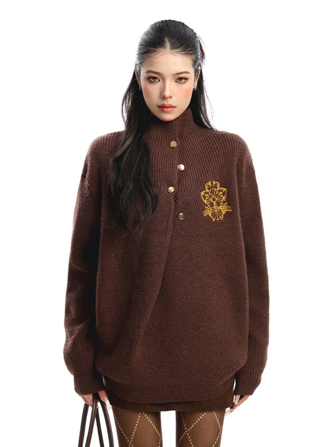 BIGGOLD | Irregular Neckline Embroidered Sweater