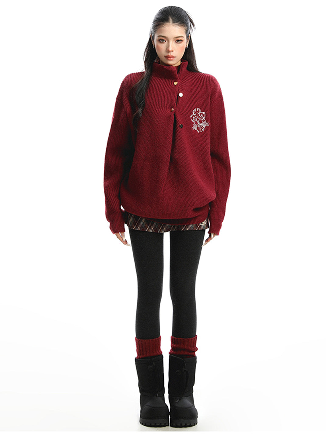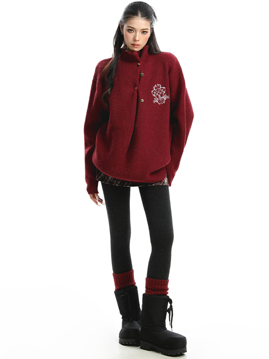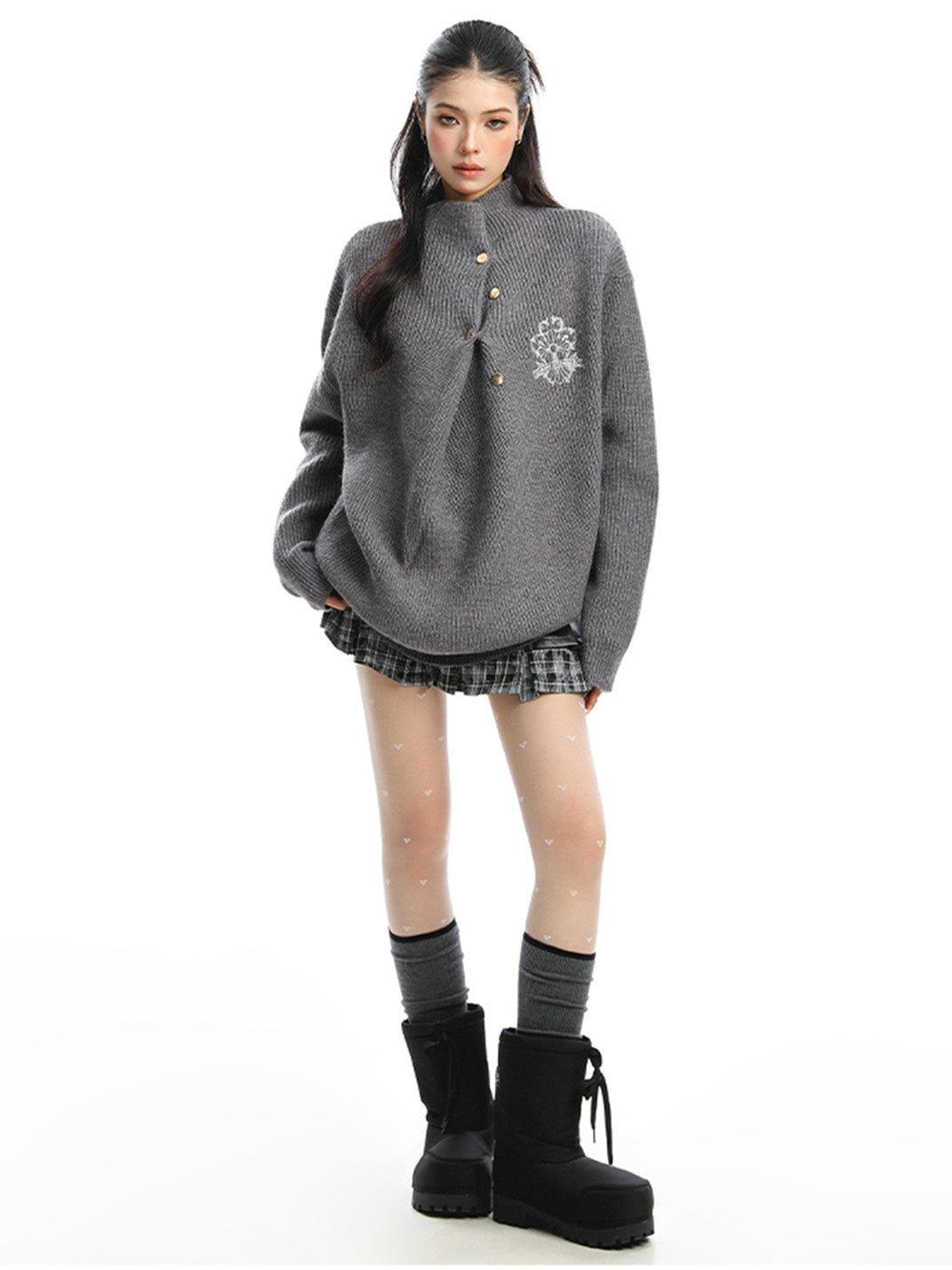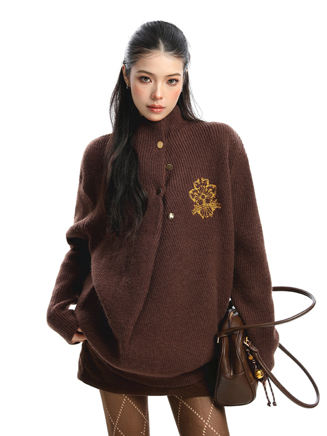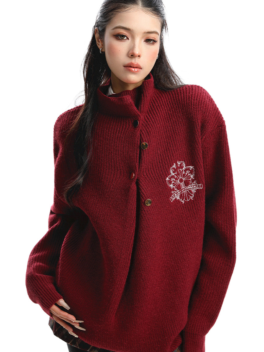 BIGGOLD | Irregular Neckline Embroidered Sweater