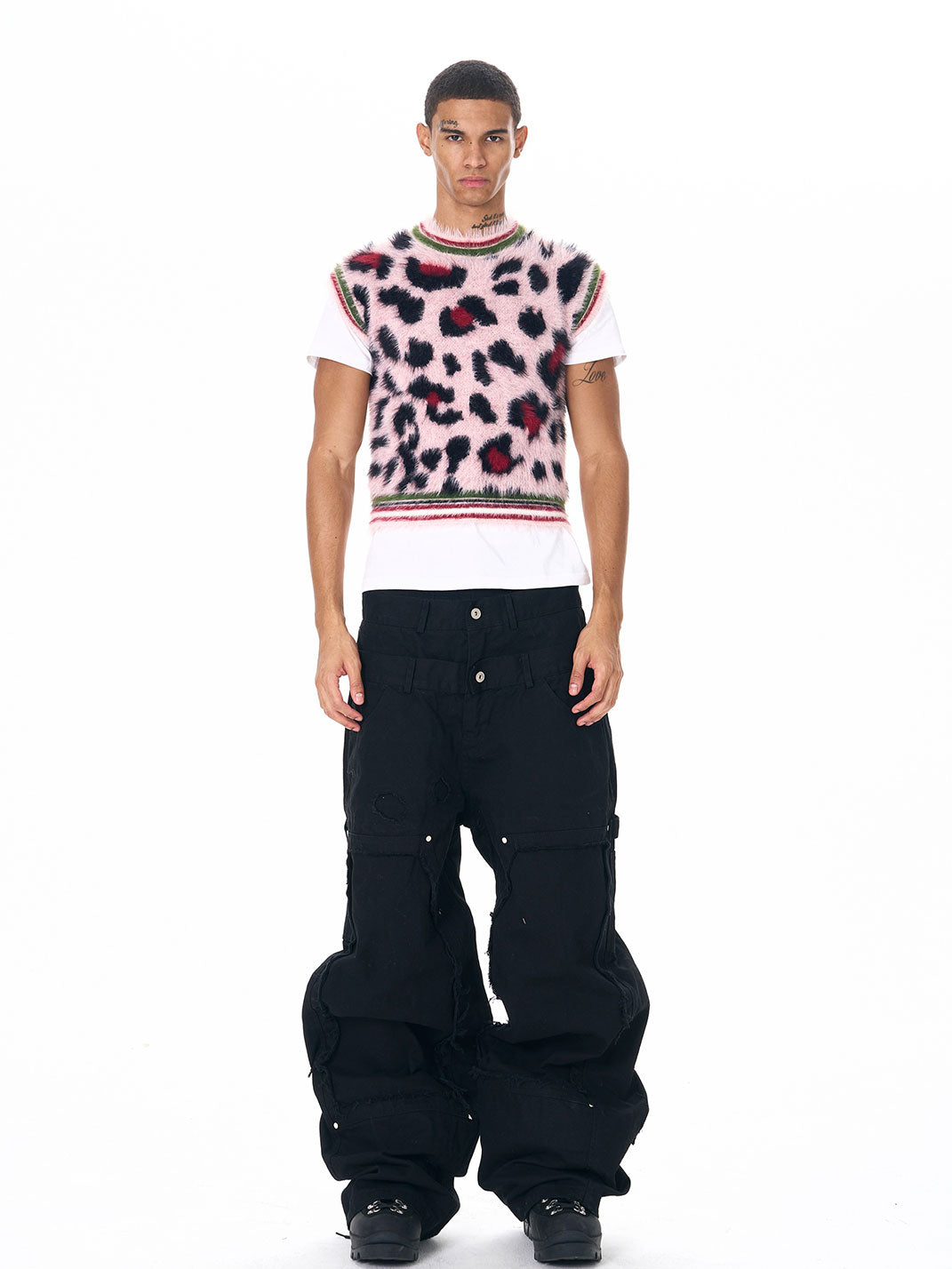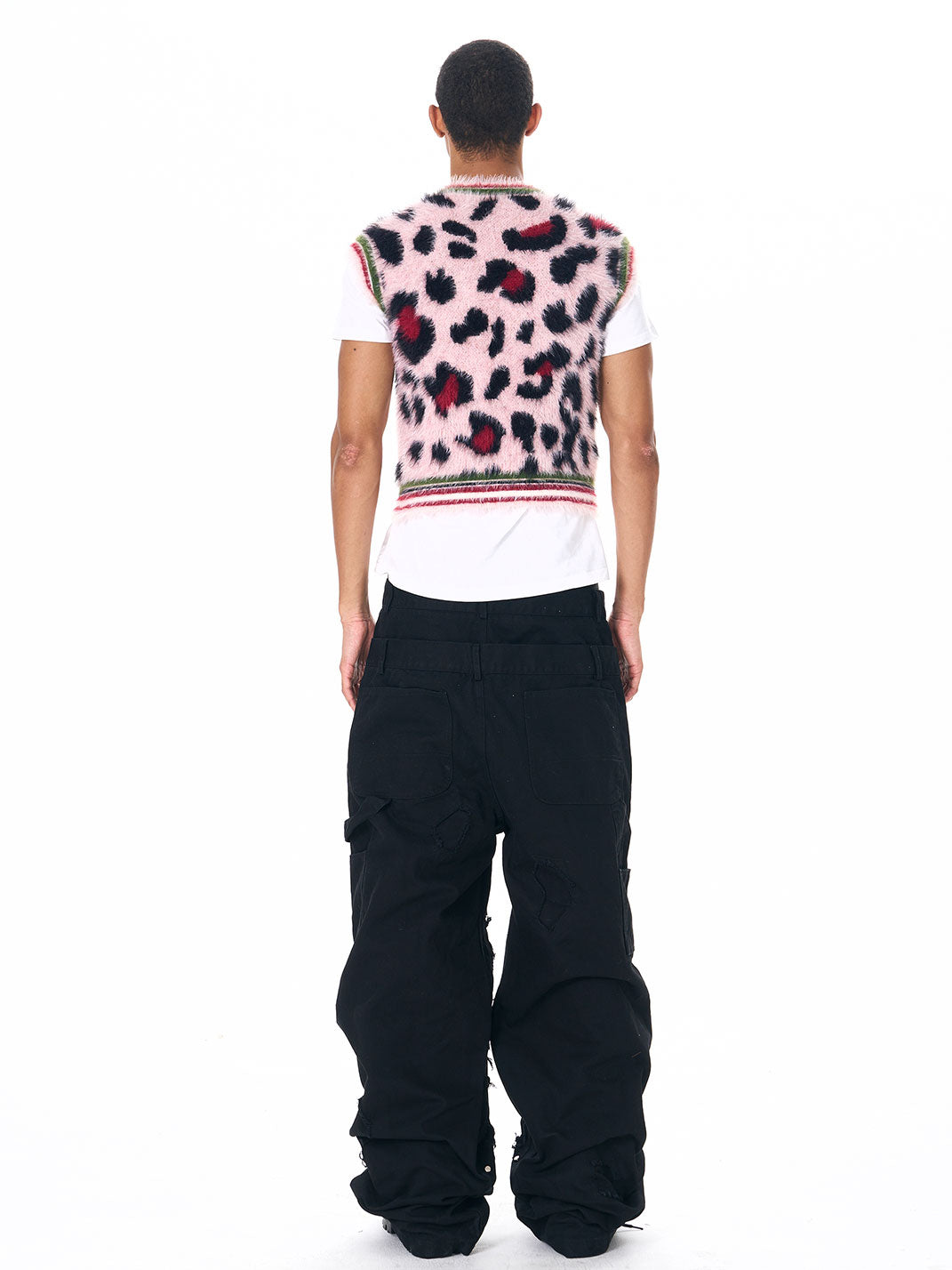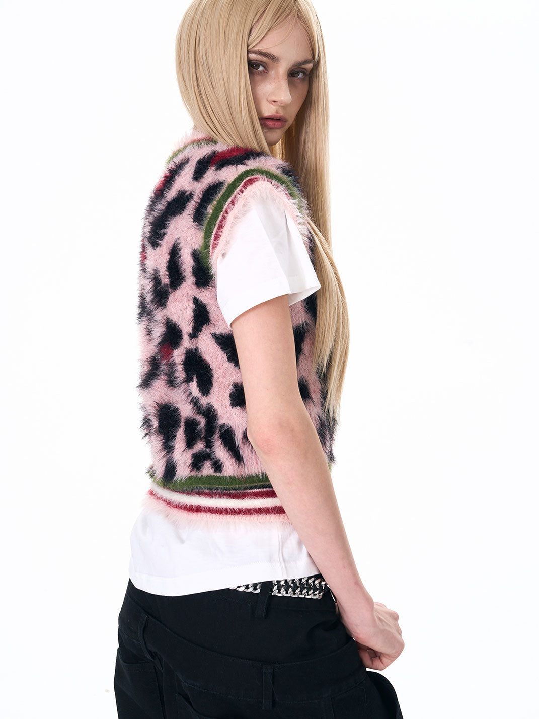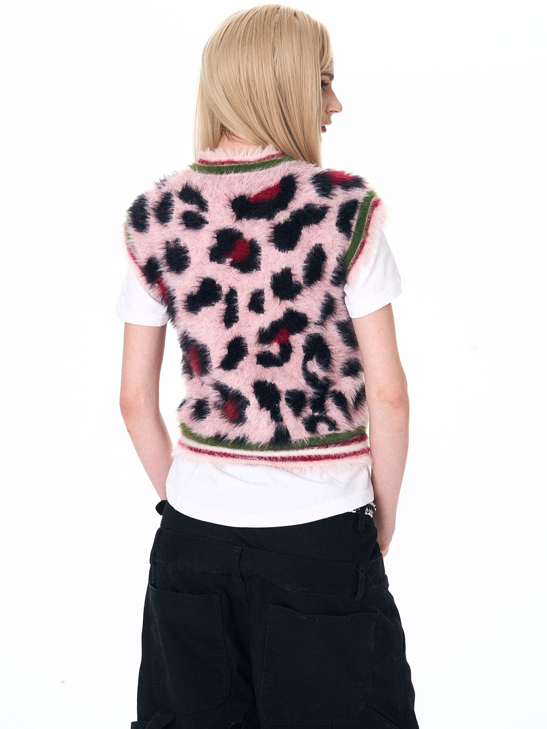 Fourth3ex | Pink Leopard Hairy Knit Vest