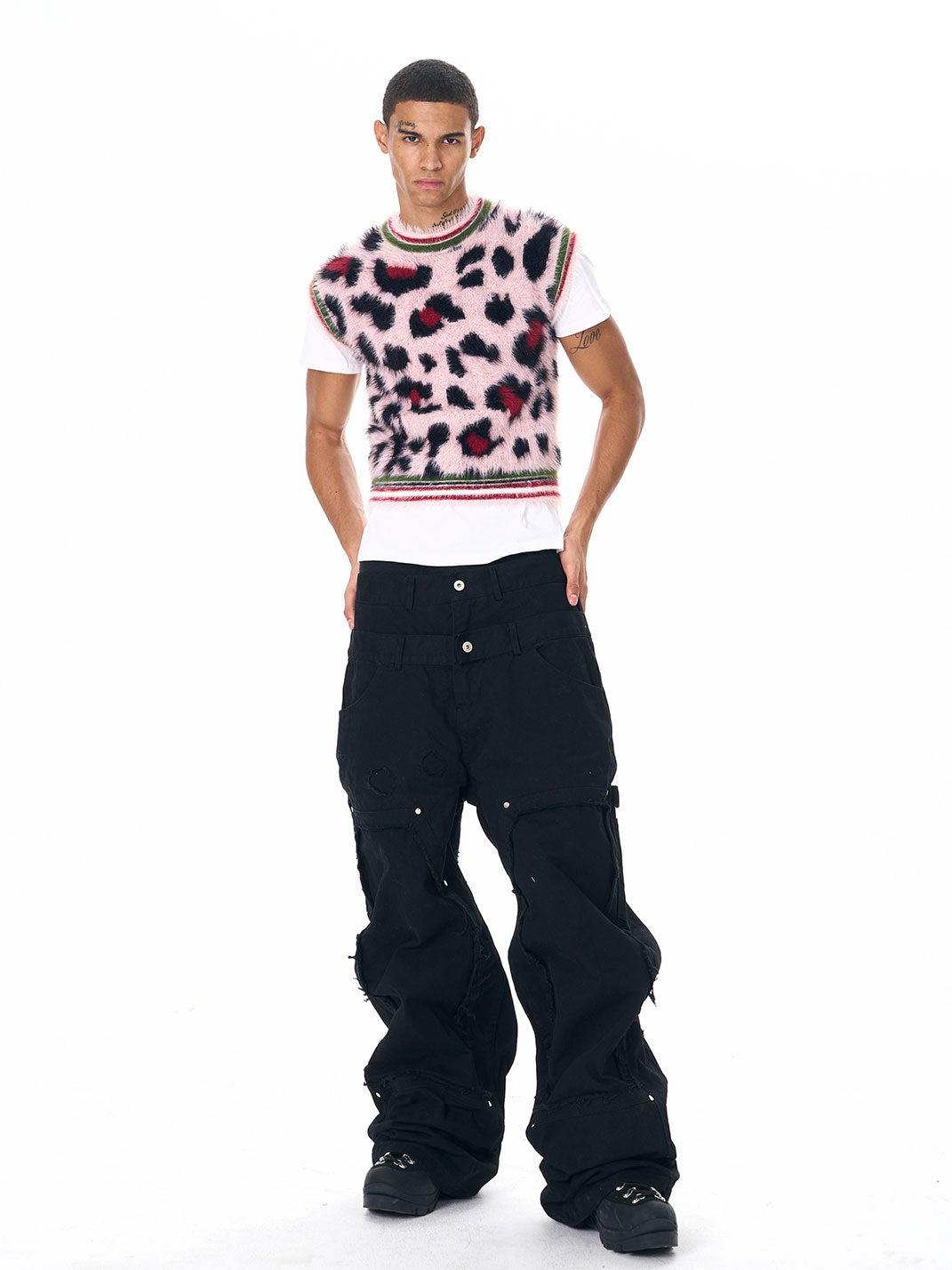 Fourth3ex | Pink Leopard Hairy Knit Vest Skip to content