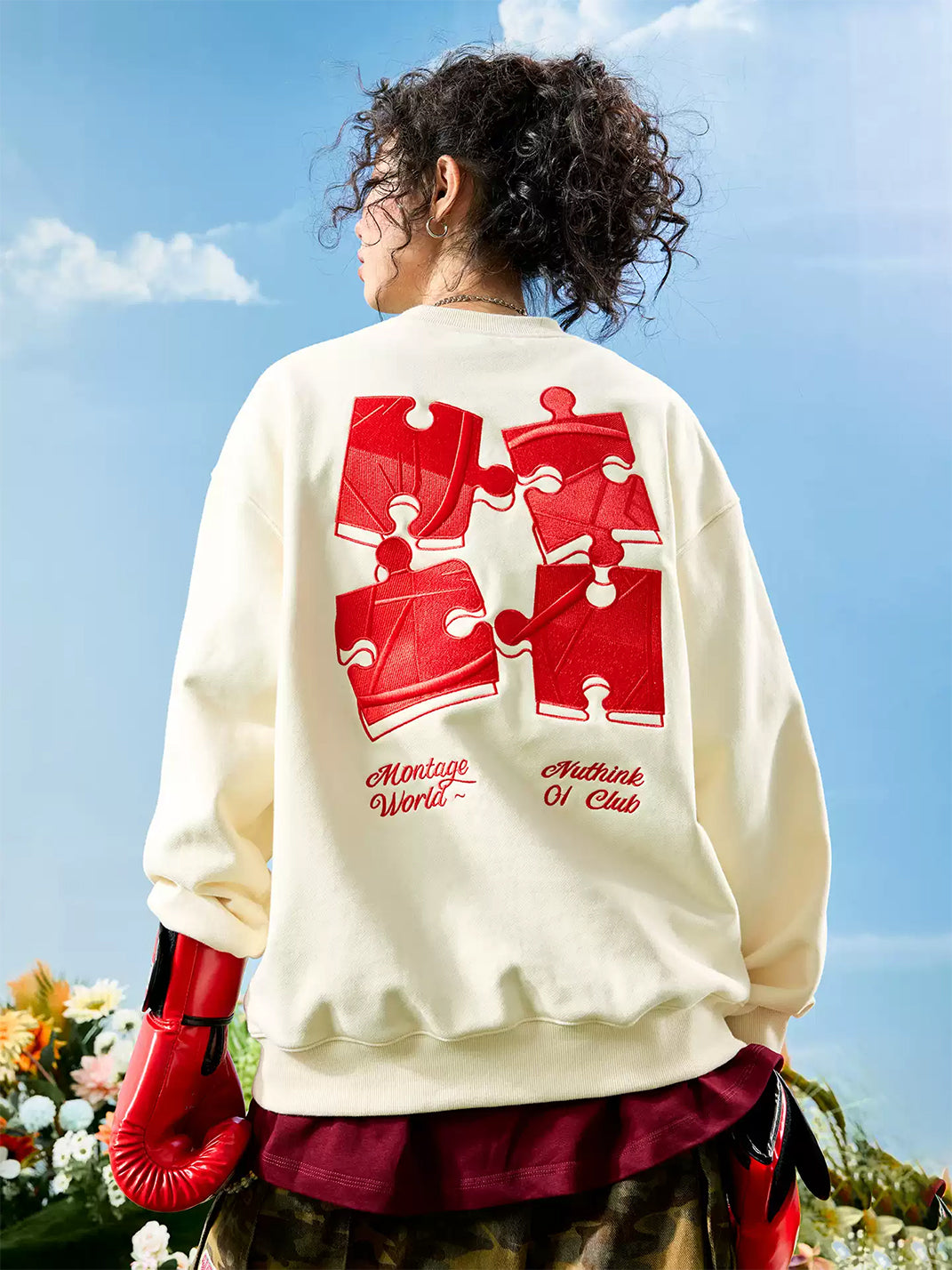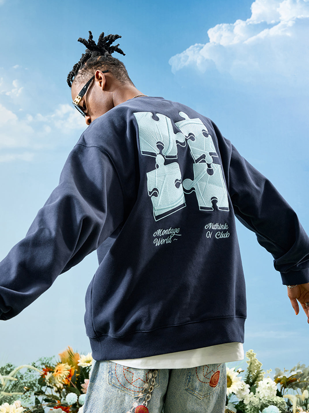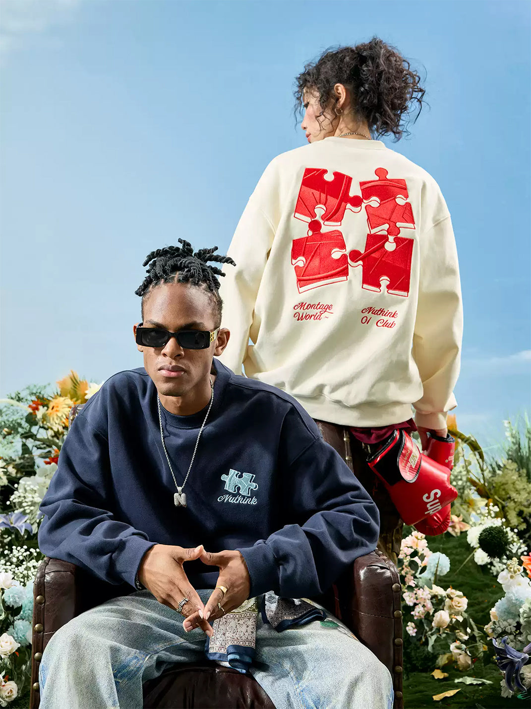 Nuthink | Puzzle Piece Embroidered Crewneck Sweatshirt Skip to content