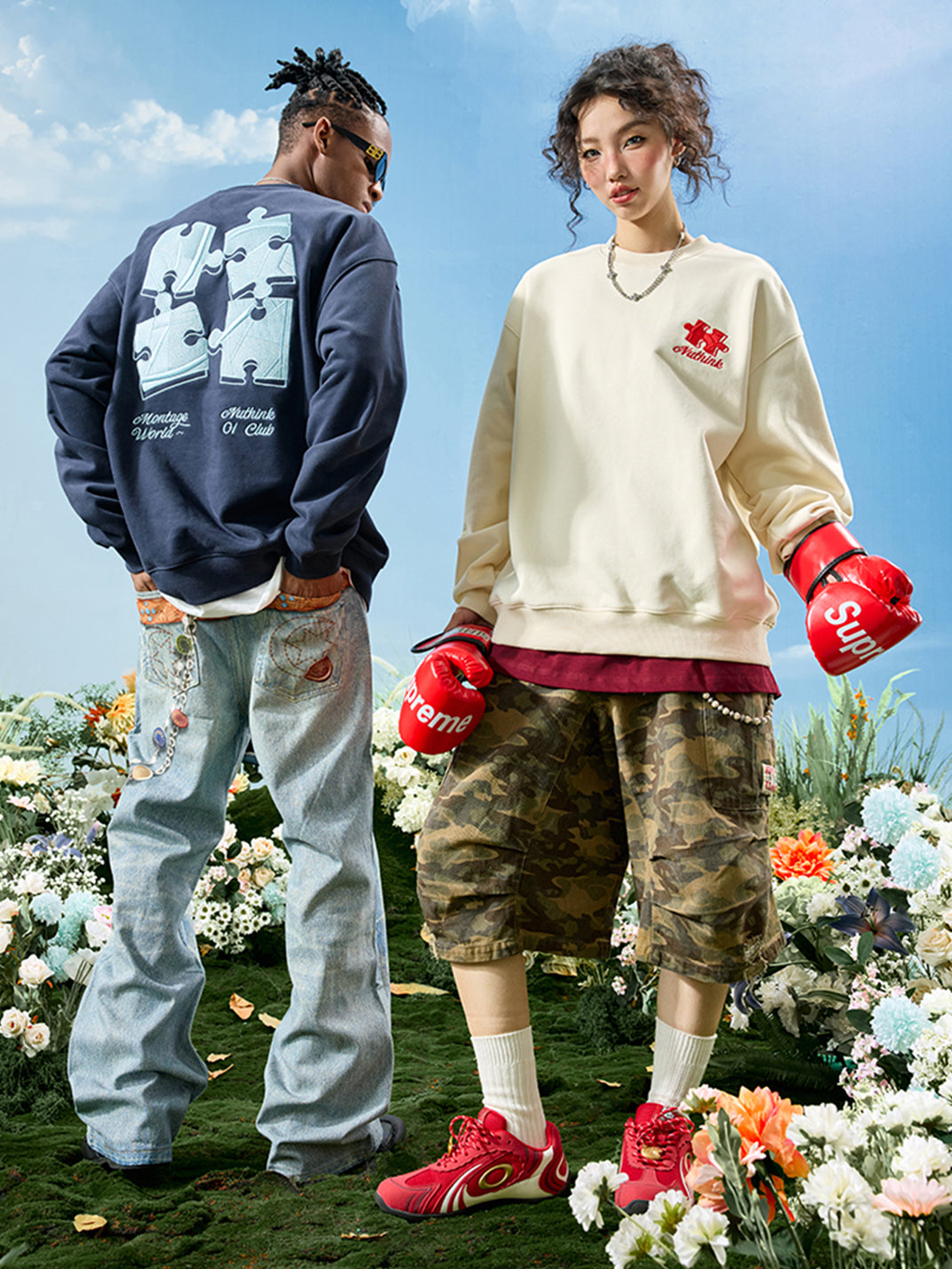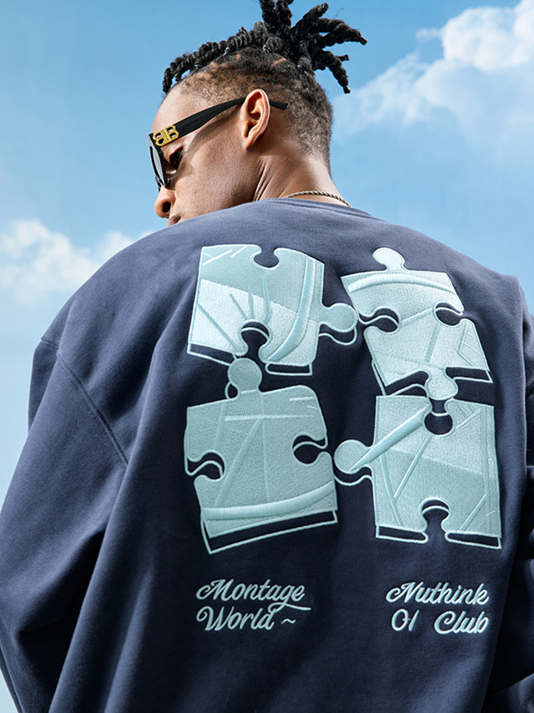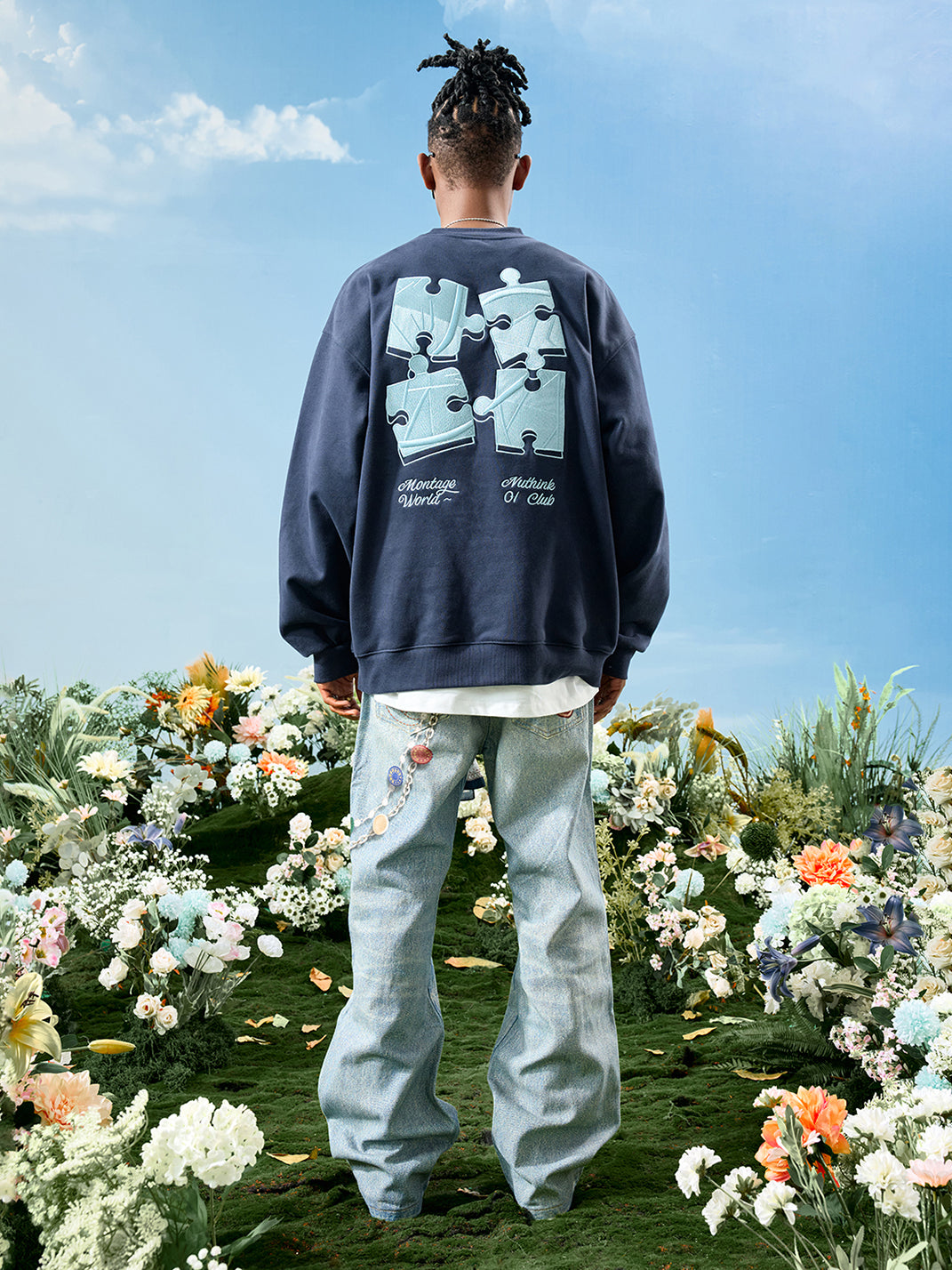 Nuthink | Puzzle Piece Embroidered Crewneck Sweatshirt Skip to content