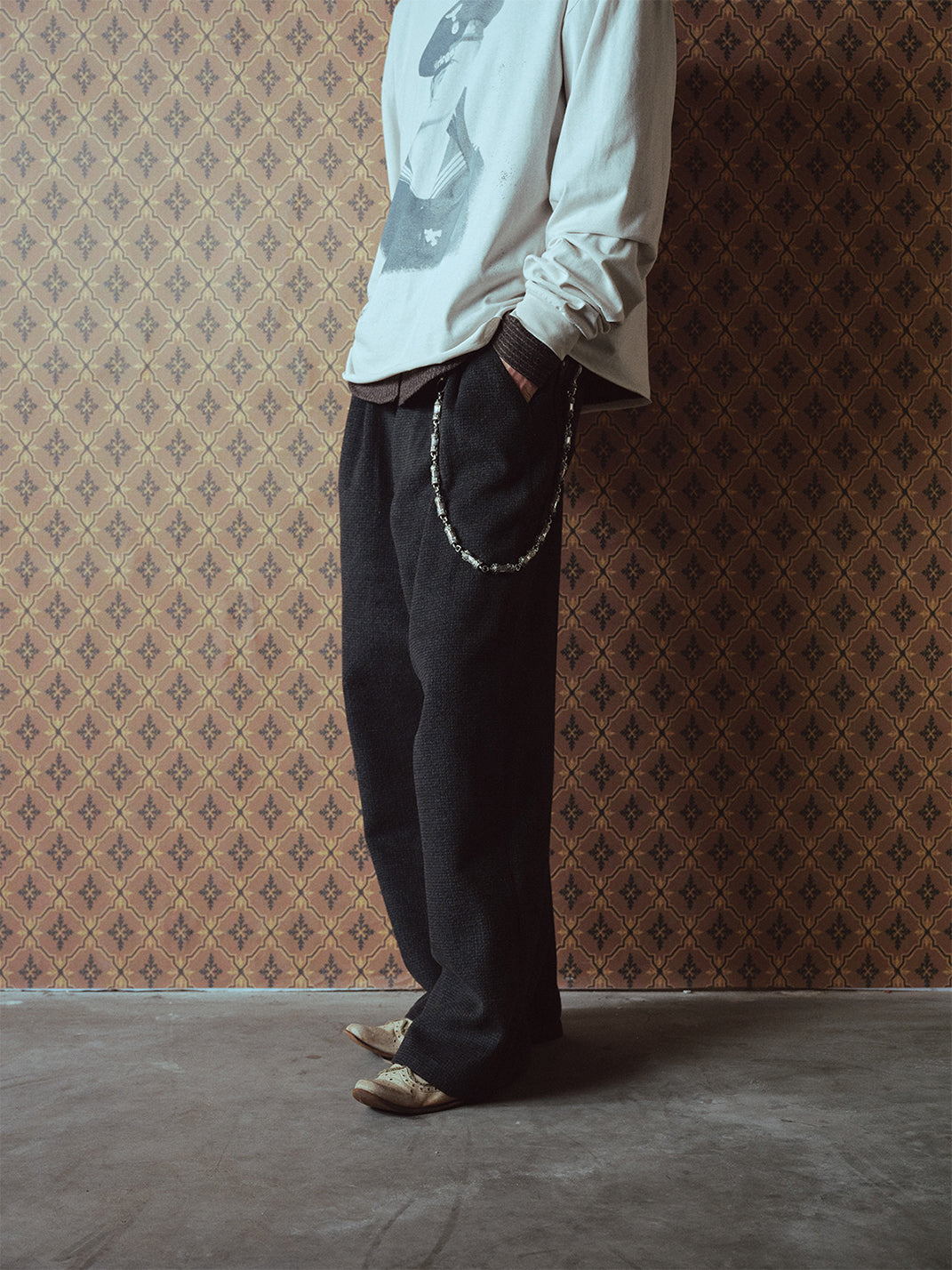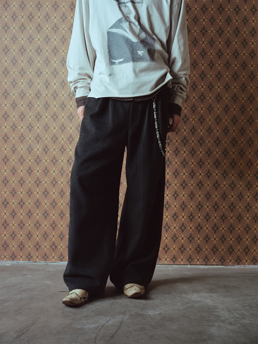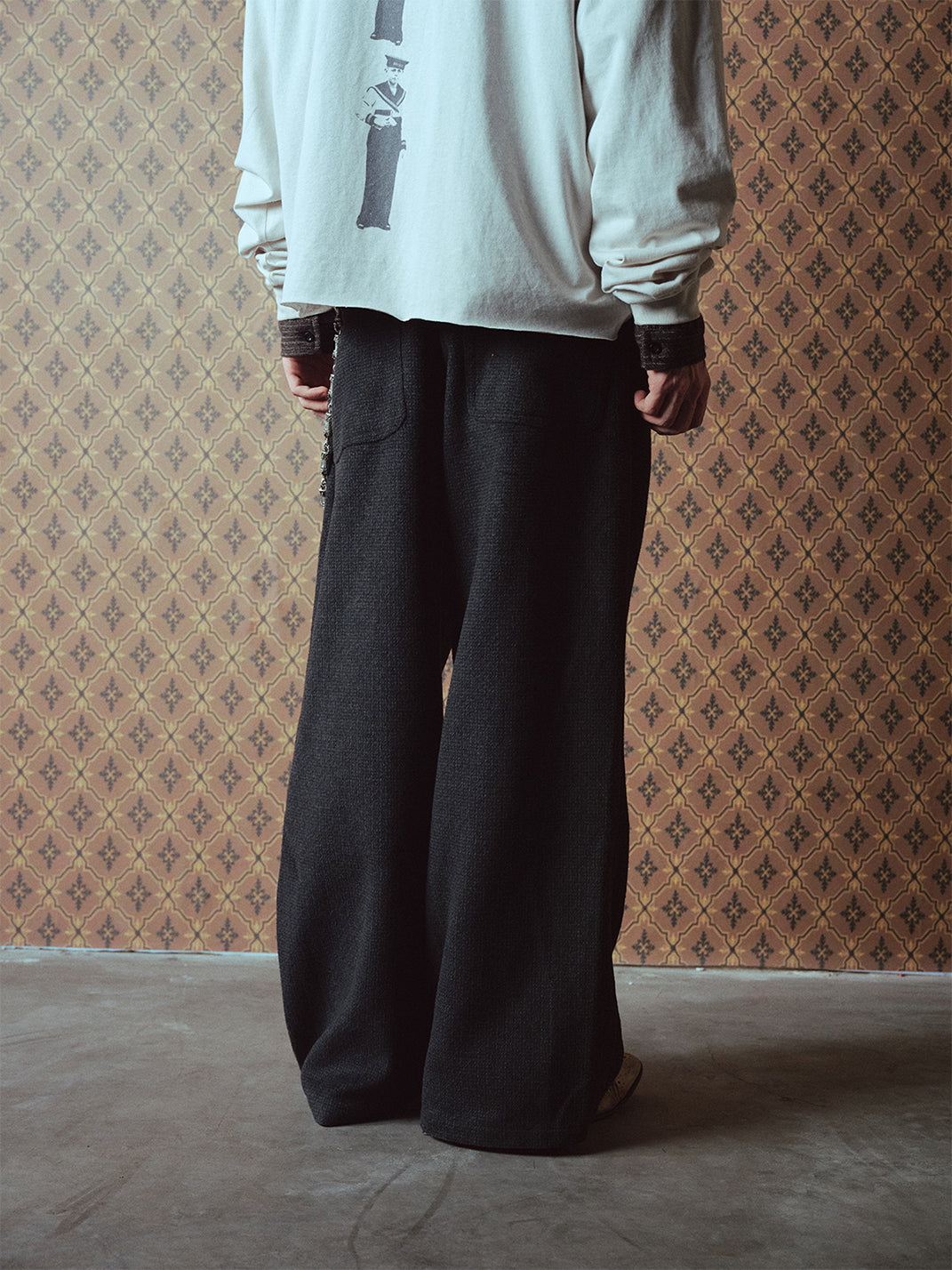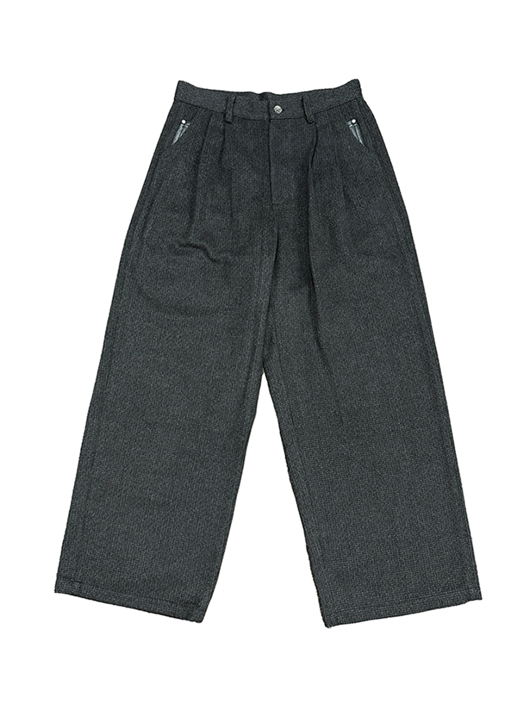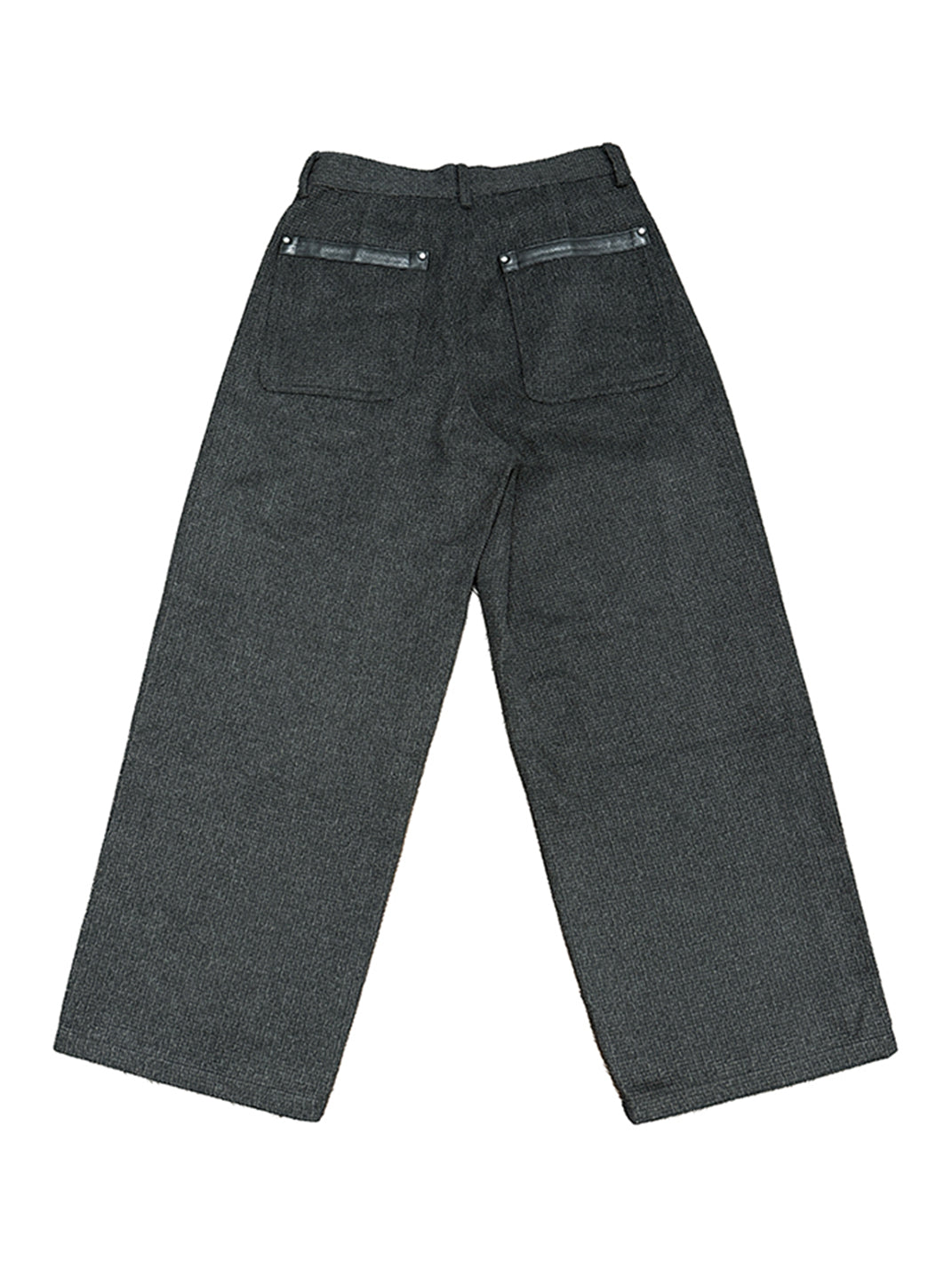 RICHILL | Dark Gray Velvet and Leather Panel Wide-Leg Trousers