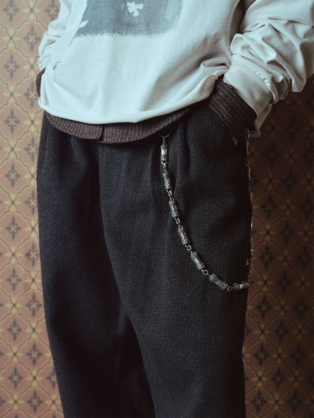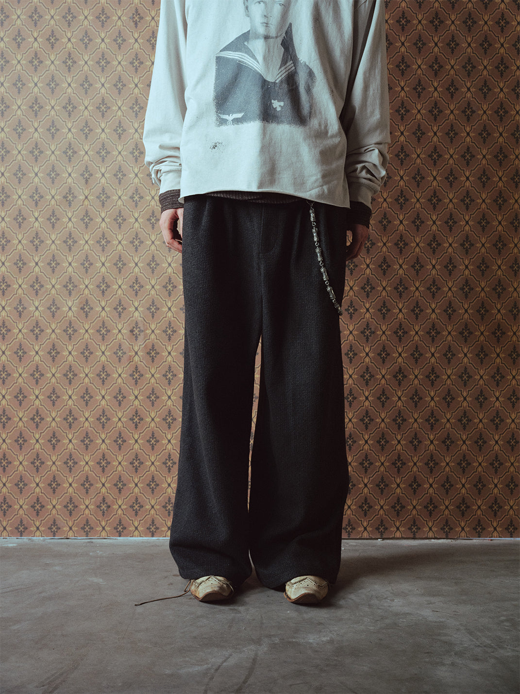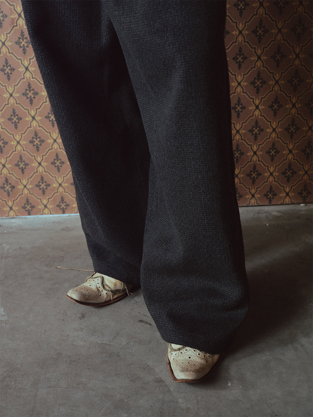 RICHILL | Dark Gray Velvet and Leather Panel Wide-Leg Trousers Skip to content
