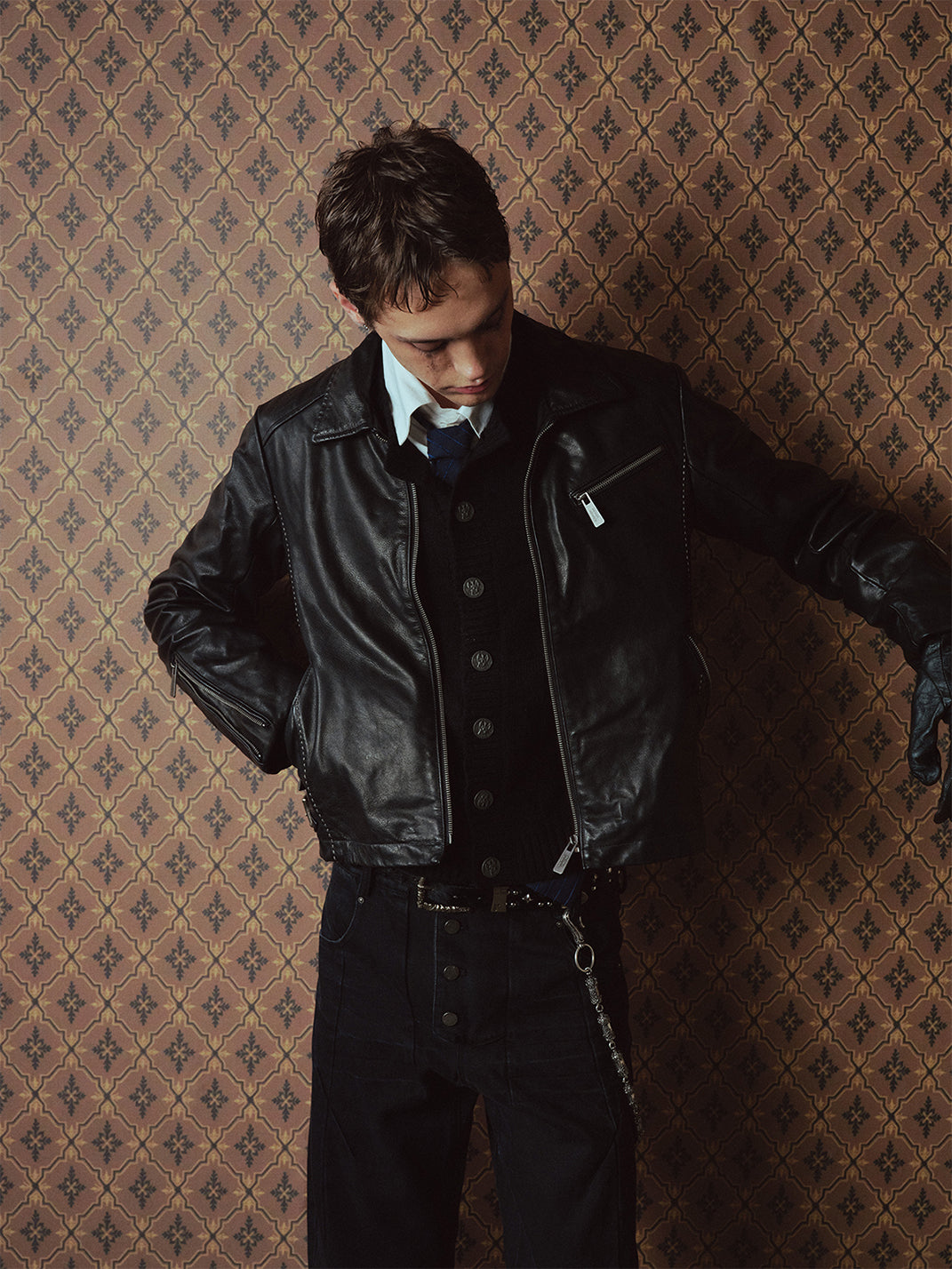 RICHILL | Genuine Leather Star Zipper Washed Biker Jacket Skip to content