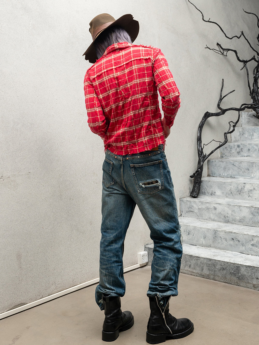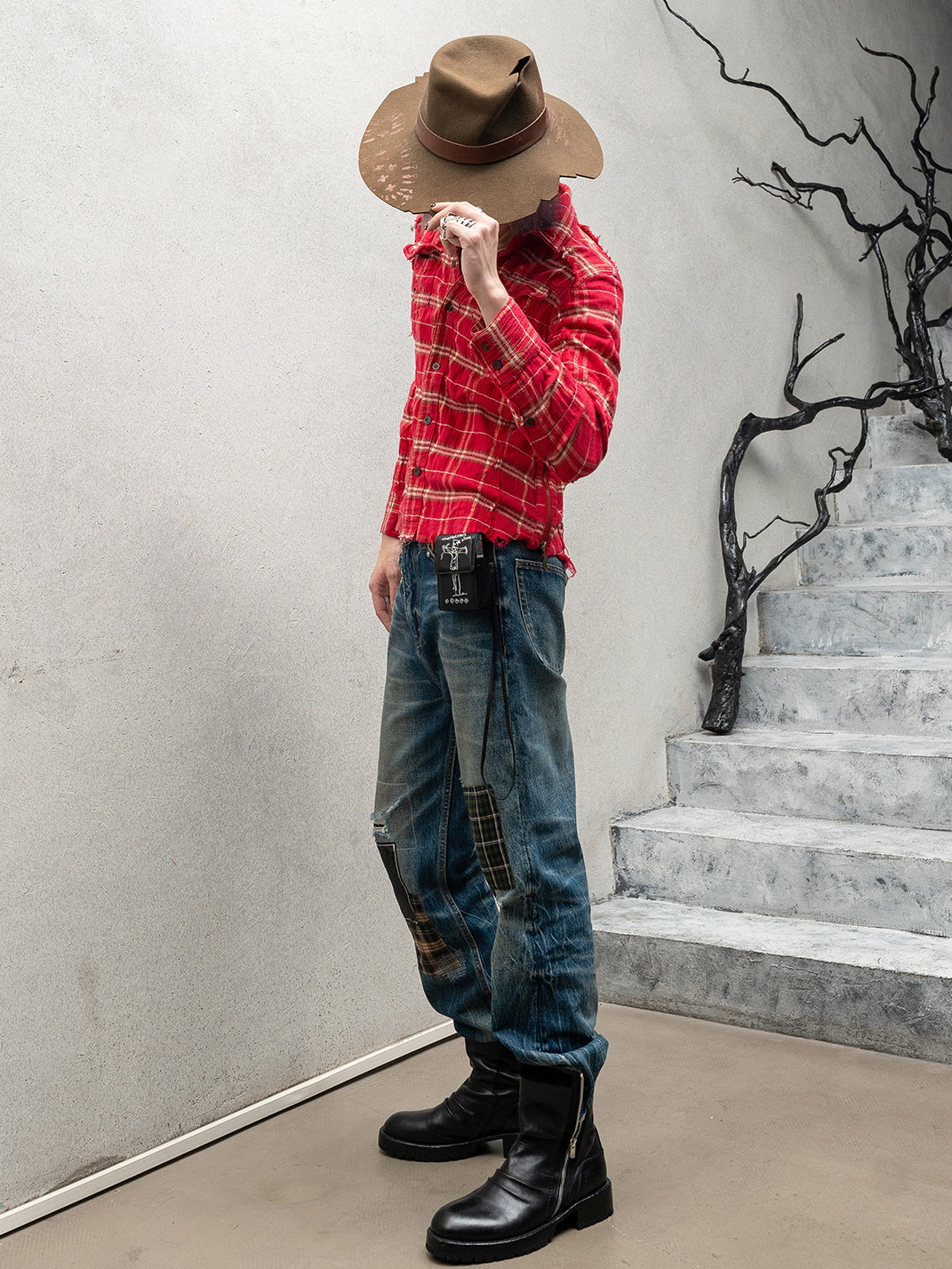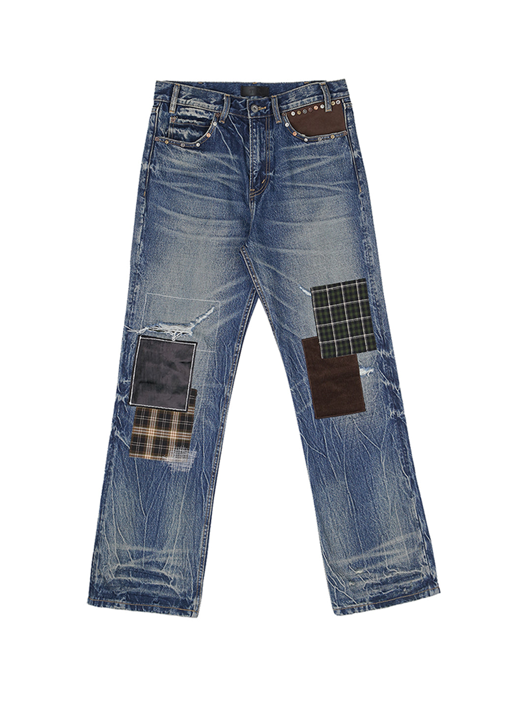 The Butchers Riot | Patchwork Distressed Slim Fit Jeans Skip to content