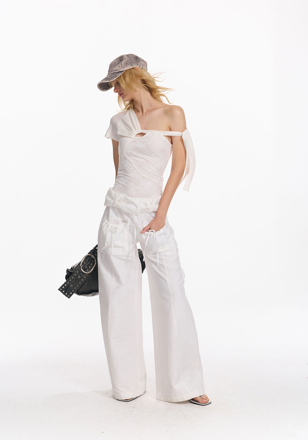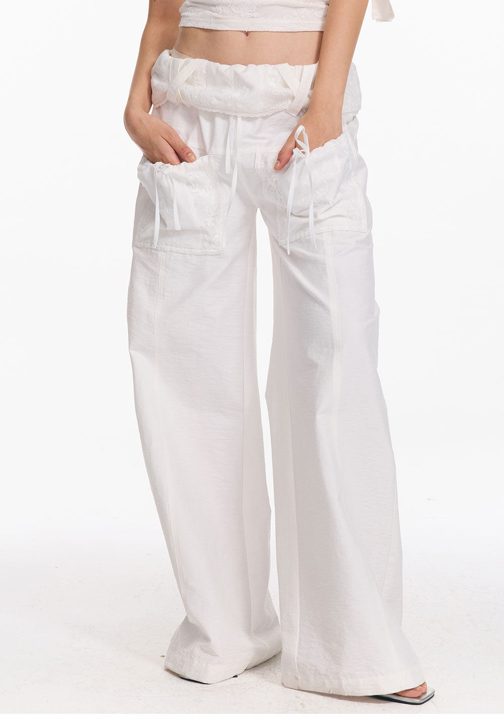 2th Desire | Folded Waist Tie Loose Draped Pants