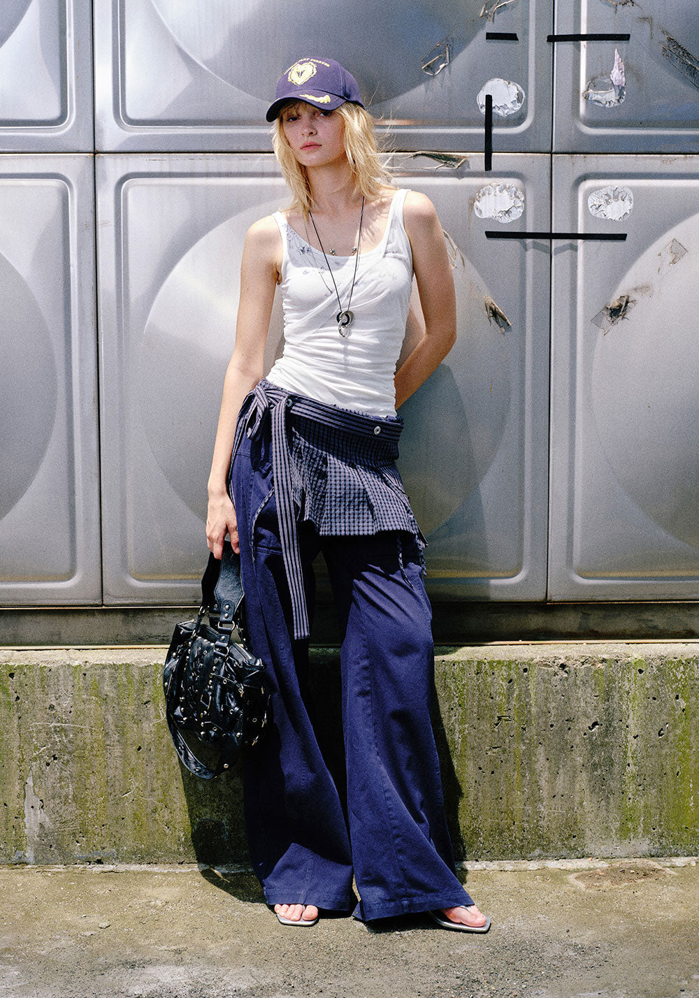 2th Desire | Folded Waist Tie Loose Draped Pants Skip to content