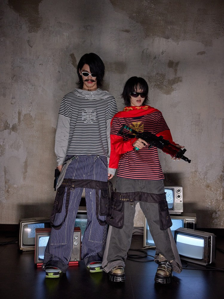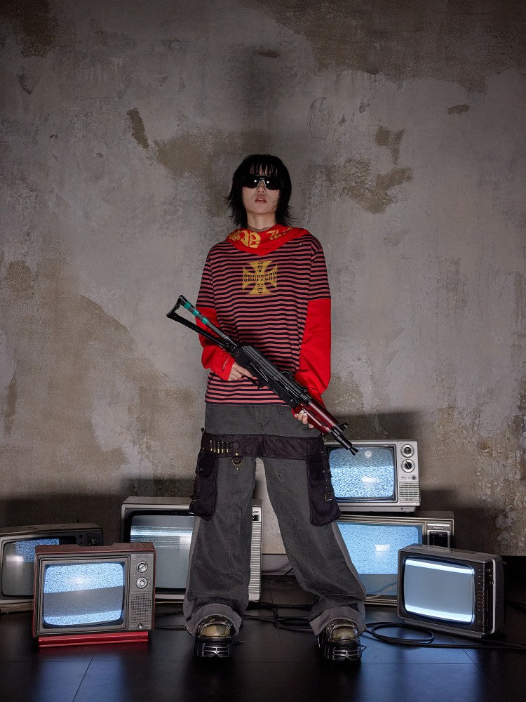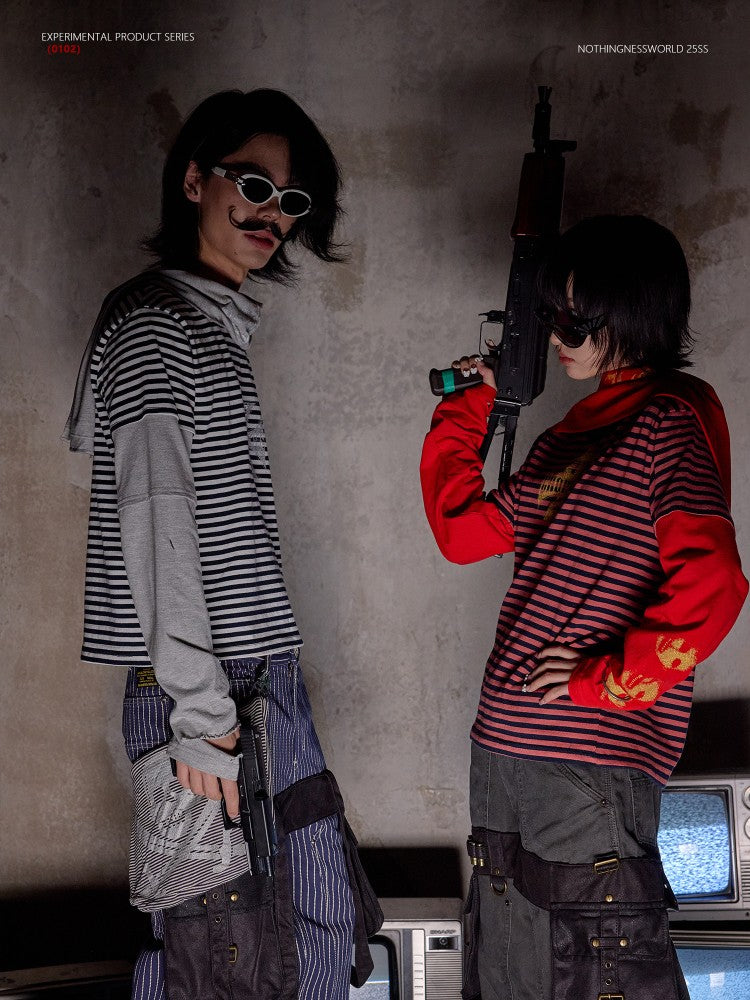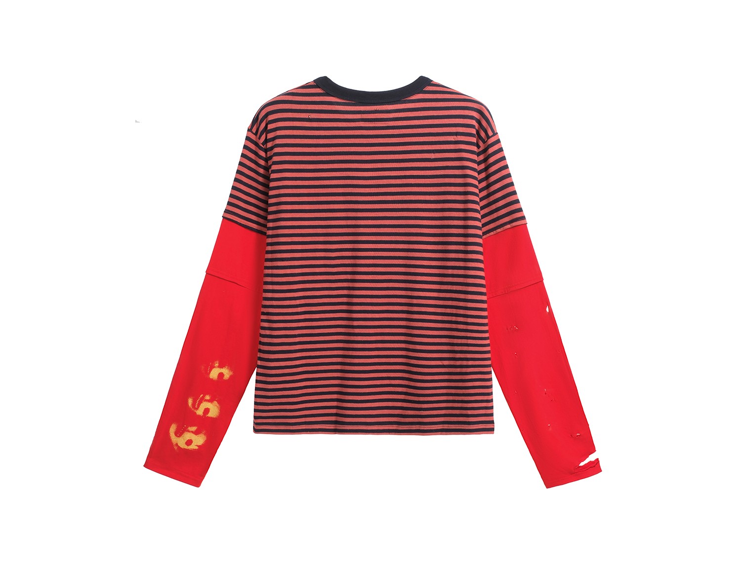 NOTHINGNESS WORLD | Distressed Colorblock Red Stripe Long Sleeve