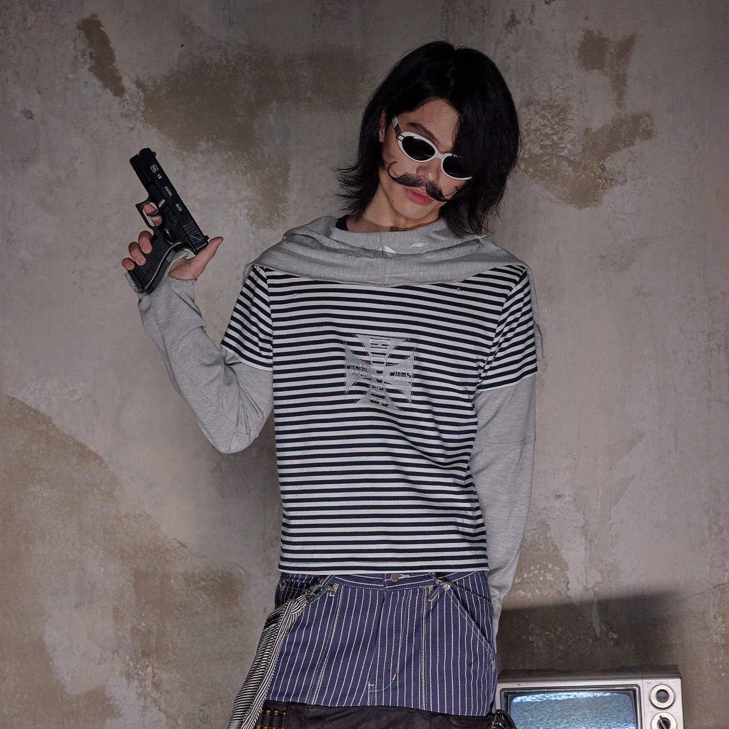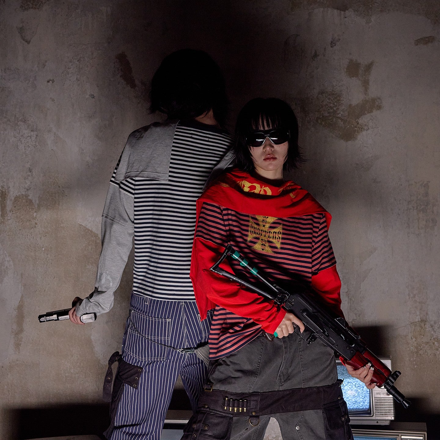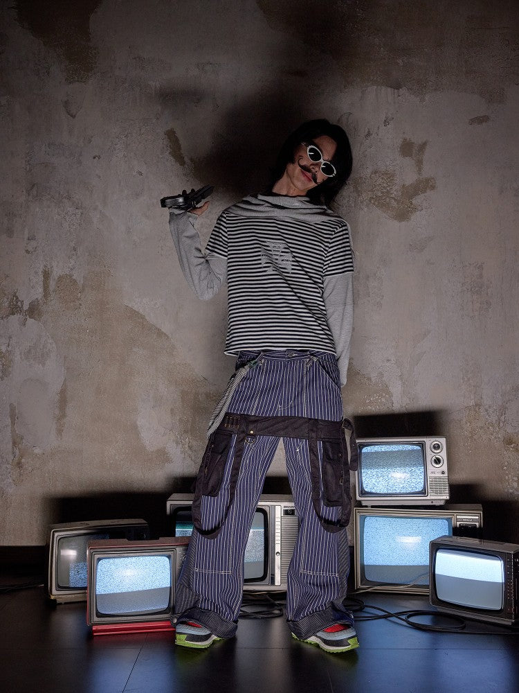 NOTHINGNESS WORLD | Distressed Colorblock Red Stripe Long Sleeve