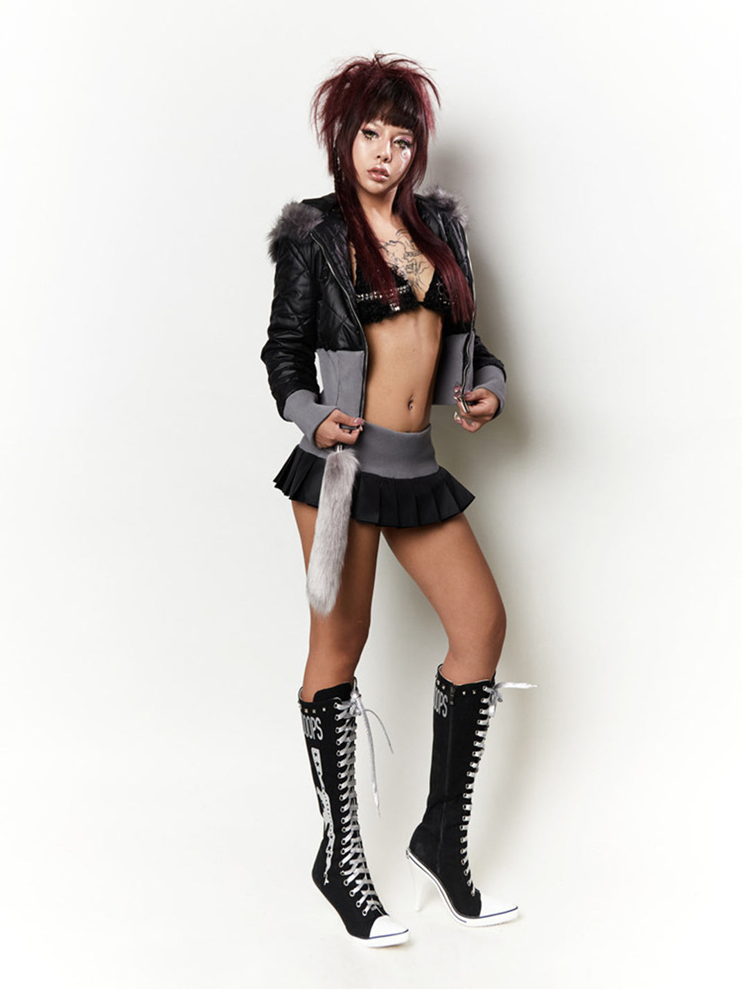 Ooops333 | Wolf Ear Jacket and Tail Pleated Skirt Set