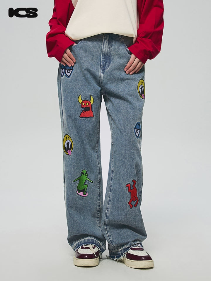 ICONSLAB-Cartoon Monster Embroidered Jeans Skip to content