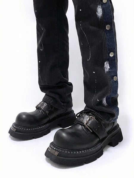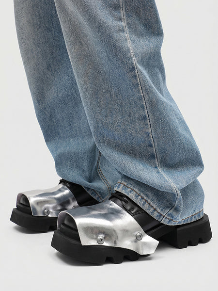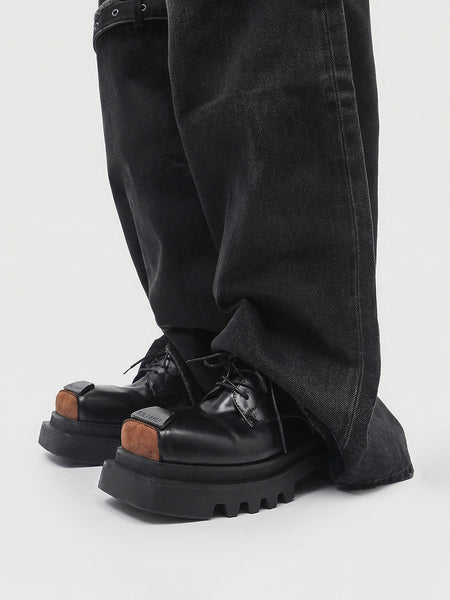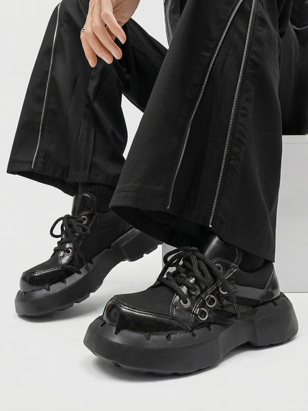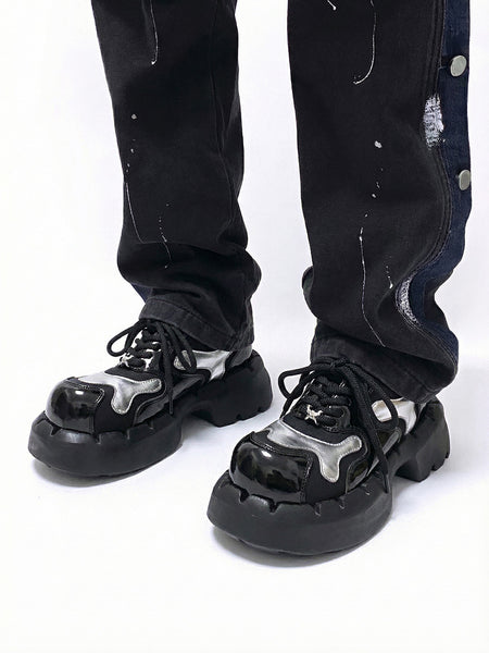 PINJIAHUI | Patchwork Platform Shoes With Metal
