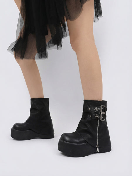 PINJIAHUI | Punk Platform Ankle Boots with Roun...