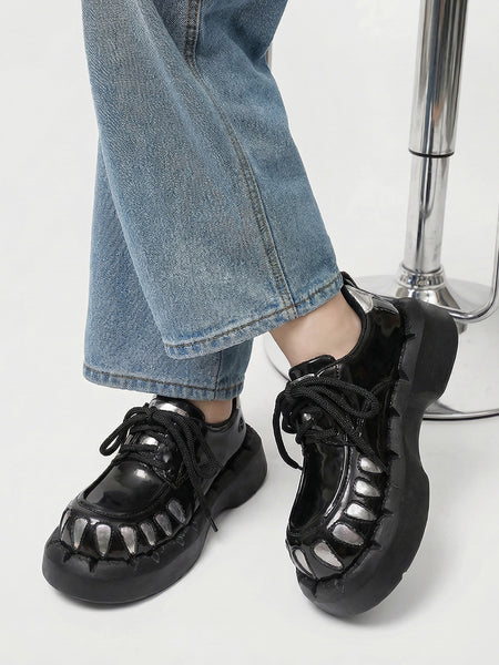 PINJIAHUI | Lace-up Metal Platform Shoes