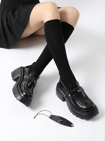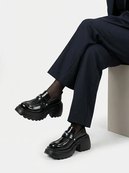 PINJIAHUI | Metal Detail Leather Platform Loafers