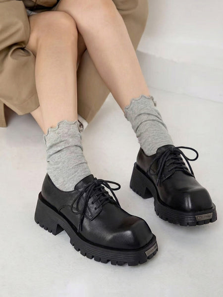 PINJIAHUI | Vintage Platform Leather Derby Shoes