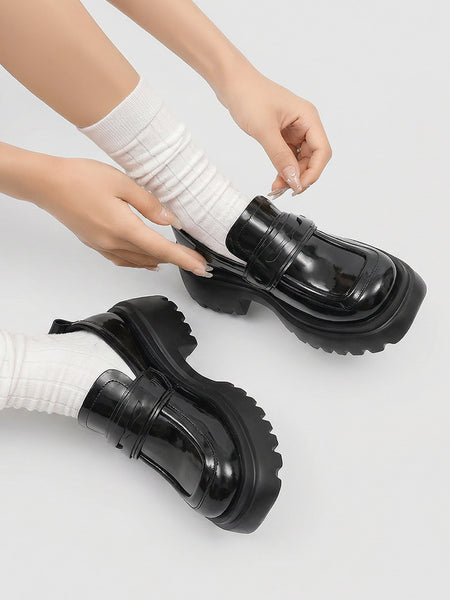 PINJIAHUI | Retro Slip-on Platform Leather Shoes